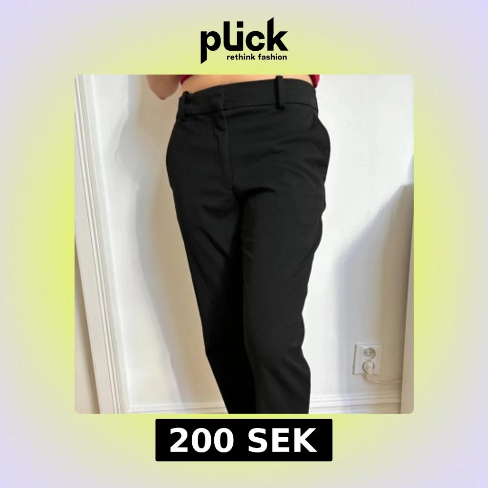 Använda två gånger. Svarta kostymbyxor med klassisk rak passform och bälteshällor. Byxorna har diskreta fickor bak och stängs med dragkedja och knapp framtill.