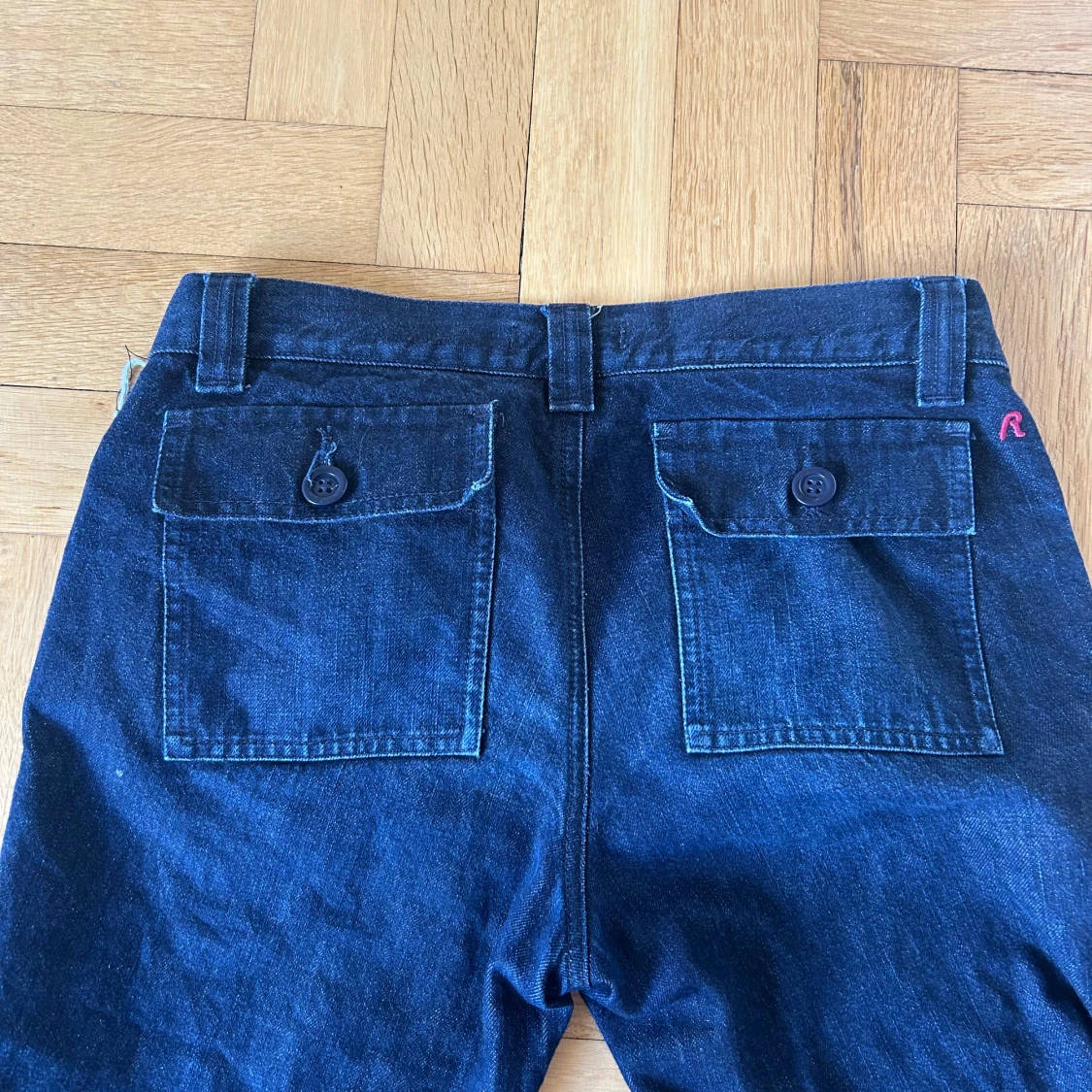 Sjukt snygga och unika jeans från Replay med raka ben och klassiska bakfickor med knappar. Byxorna har medelhögmidja.