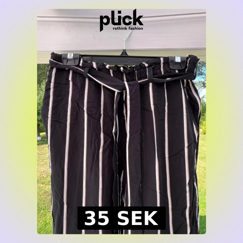 Ett par randiga byxor som är lite kortare. Stretchband i midjan + knytband. Sparsamt använda, storlek 40 🤎 Innerbenslängd: 65 cm Midja: 77 cm