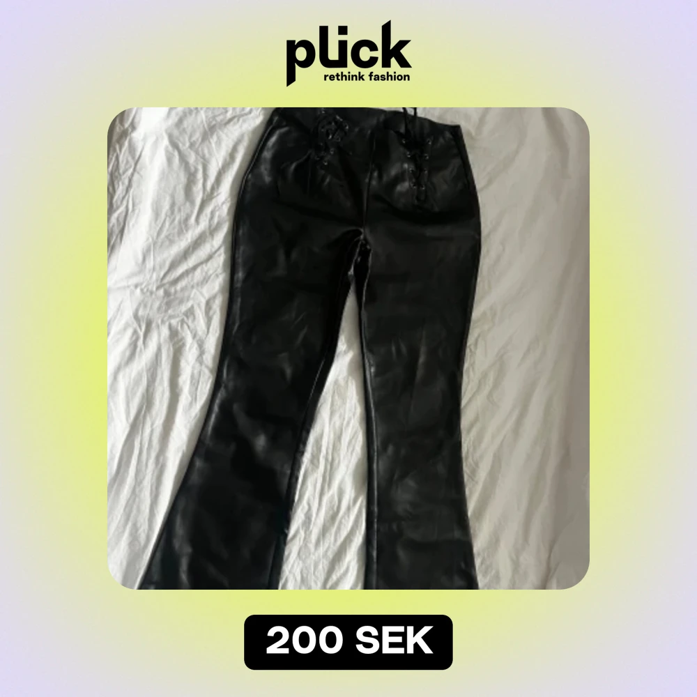 Svarta bootcut byxor i skinnimitation med knyte framtill. Oanvända från ASOS. Stl M