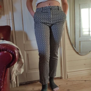 Ett par mönstrade konstymbyxor i ett relativt oelastiskt material. Det står inte vilken storlek de är men jag uppskattar att de borde vara S.