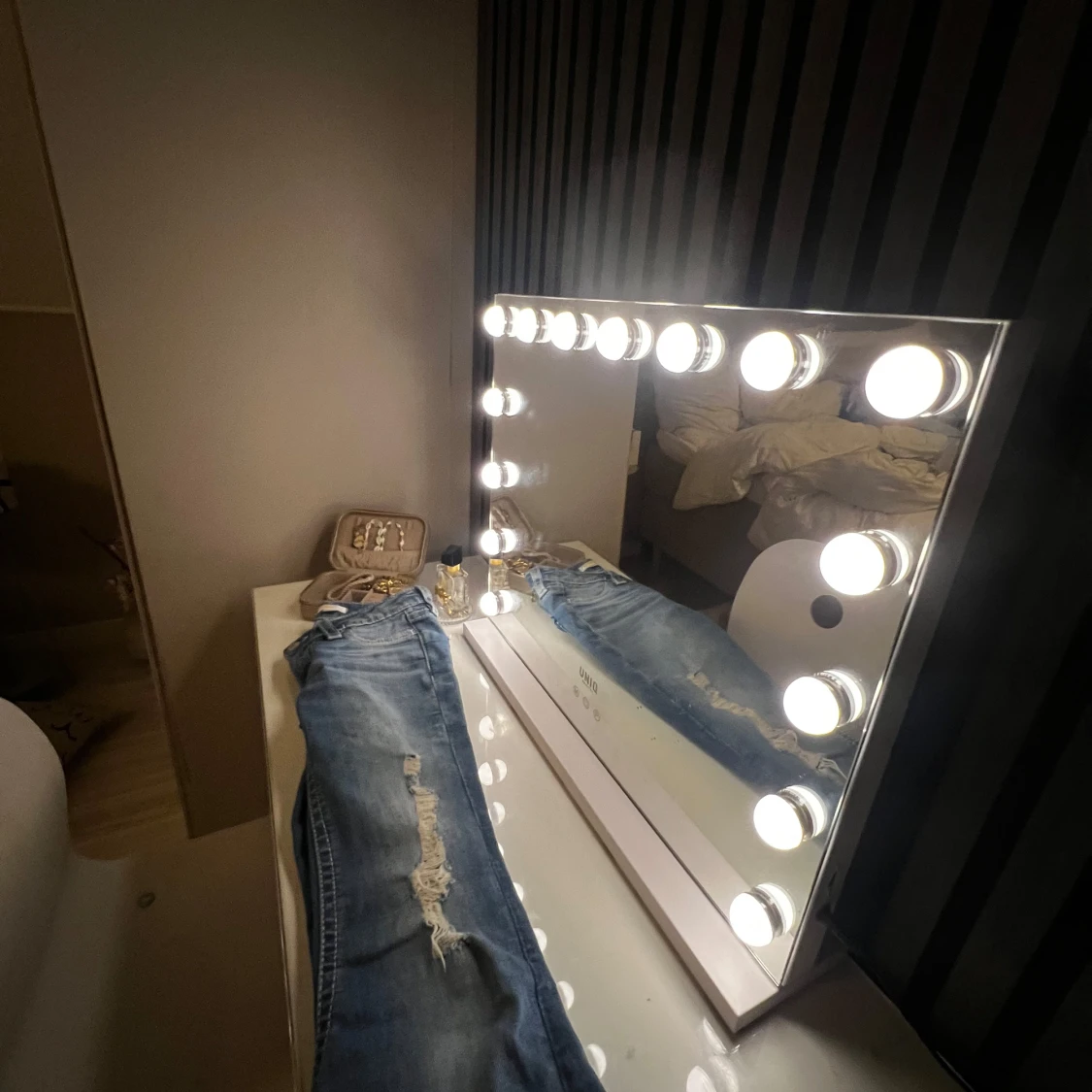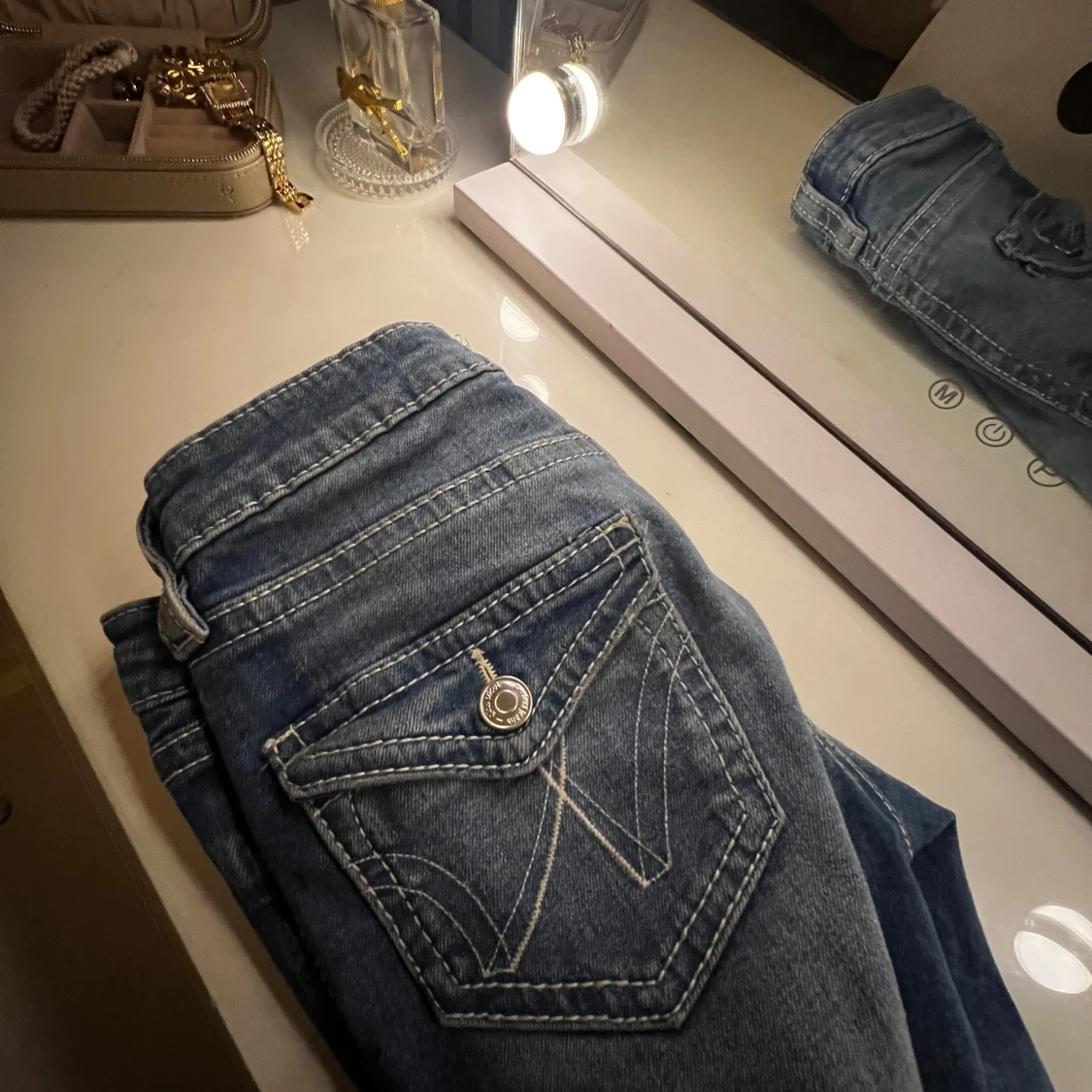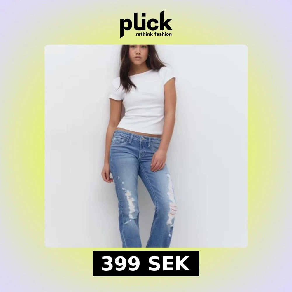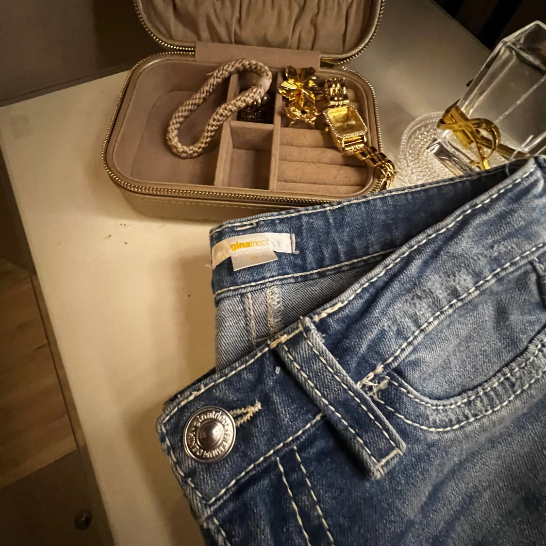 Säljer ett par blå jeans från Gina Tricot med slitna detaljer och hål på benen. Andvänds cirka 3 gånger och är inga fel alls på skicket! Storlek xs, från ginas nya avdelning 14+, säljer för 399kr, nypris ca 450kr, priset kan diskuteras💓
