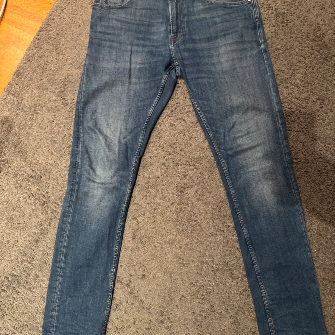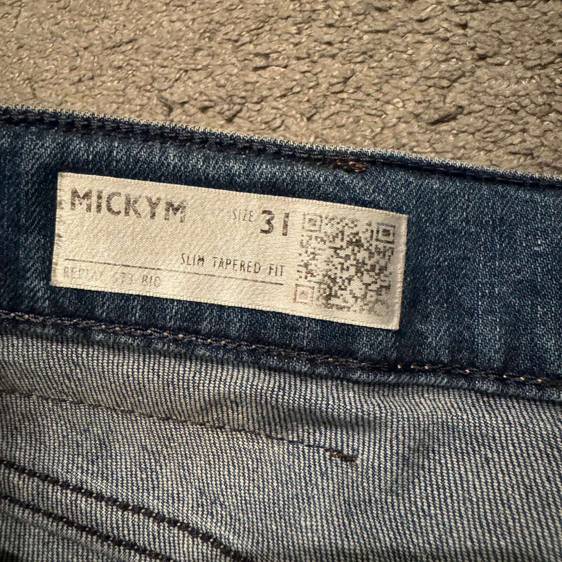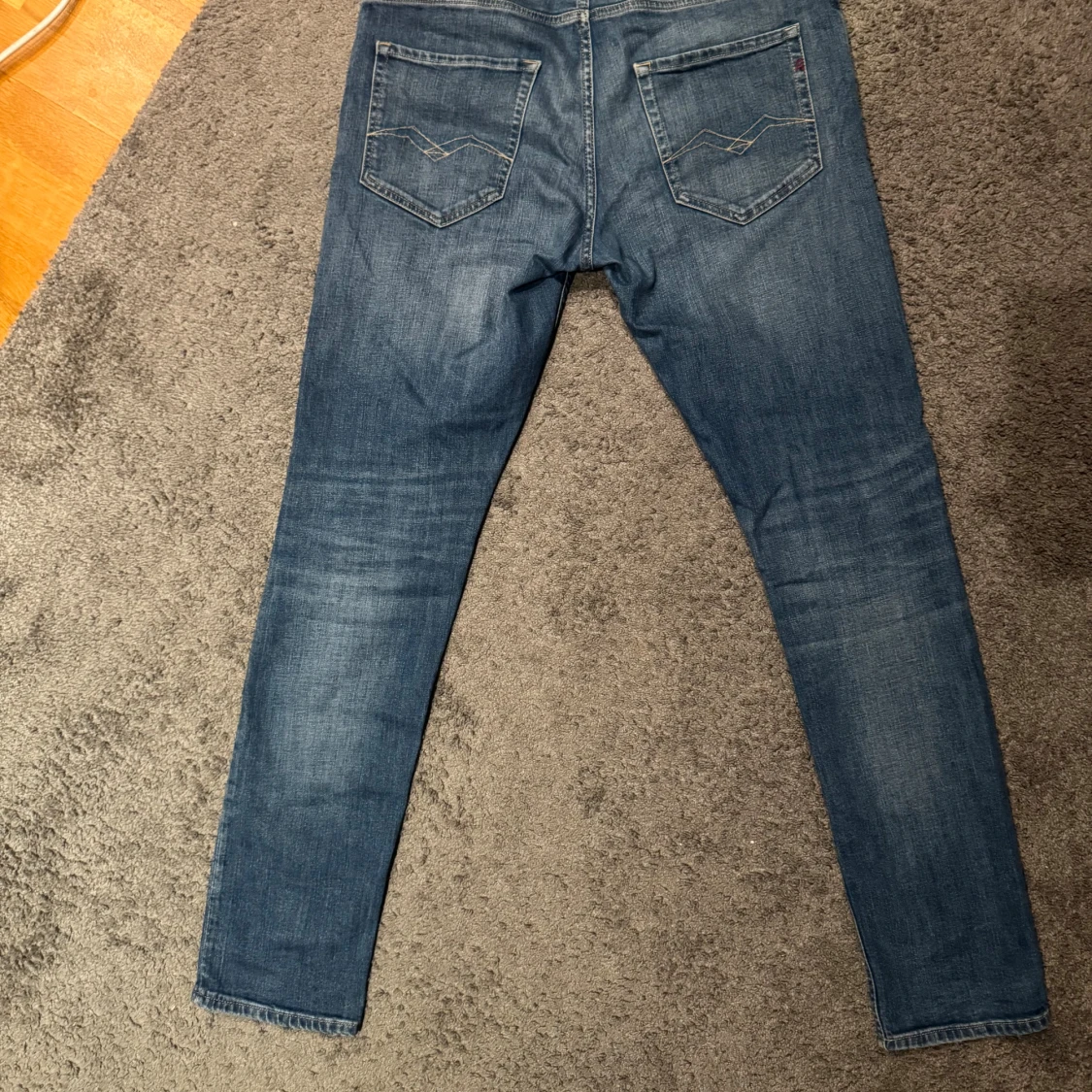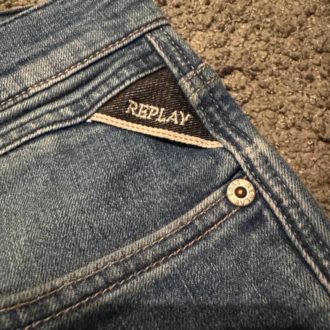 Säljer ett par blå jeans från Replay, storlek 31. Jeansen har en slim tapered fit med klassisk femficksdesign och snygga detaljer vid fickorna. Materialet är jeans och färgen är en mellanblå tvätt som passar till det mesta. En väldigt clean look helt enkelt 🤩