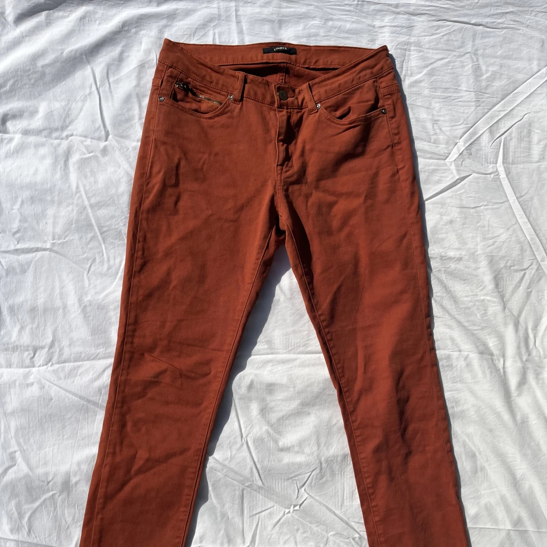 Kopparfärgade jeans med tight passform och söt kedjedetalj vid ficka 💕bra skick