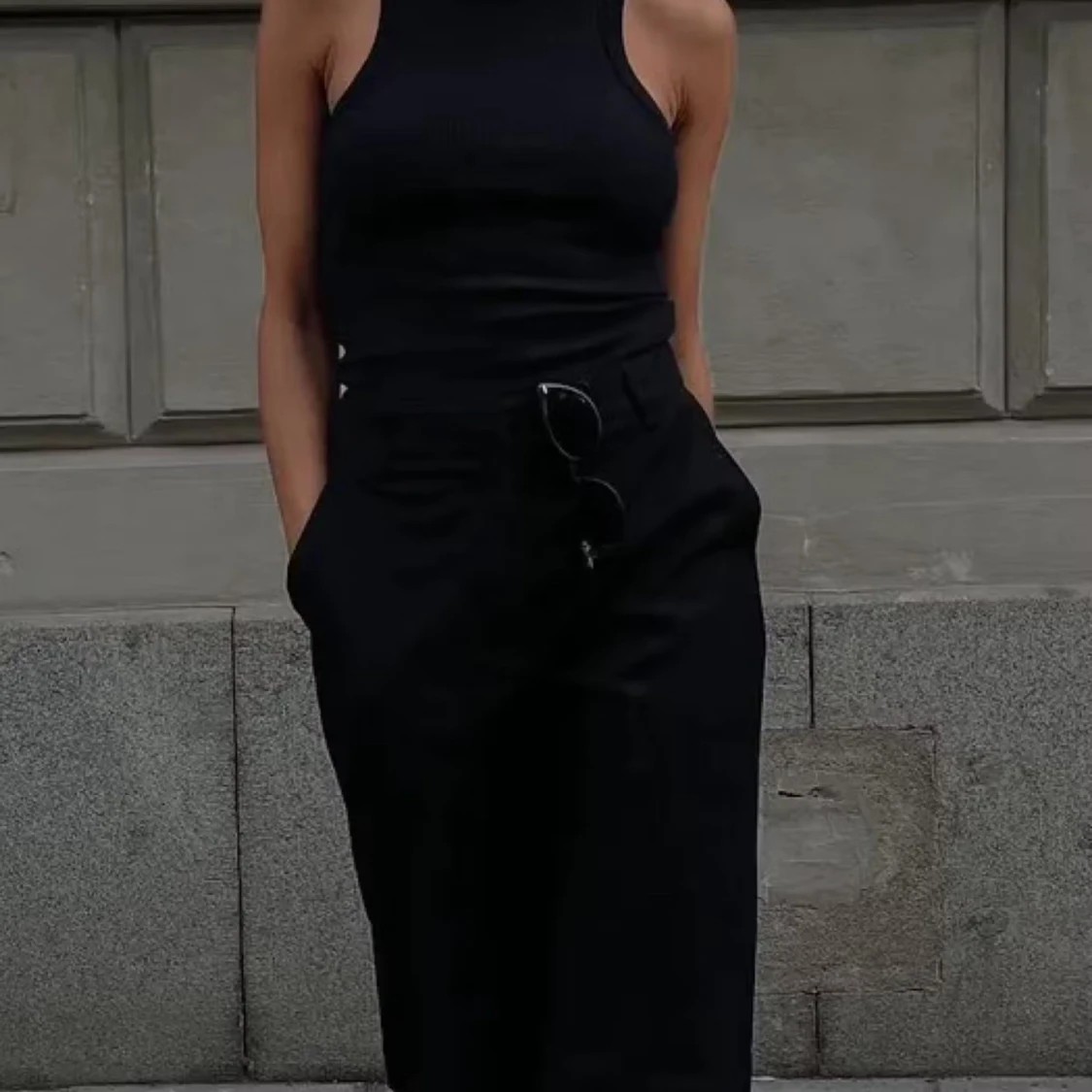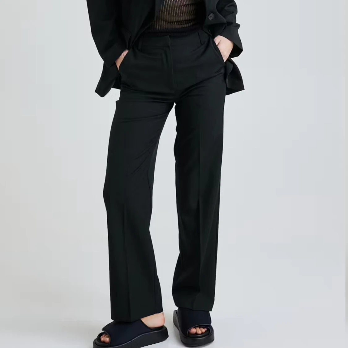 Snygga svarta kostymbyxor med hög midja och raka ben.