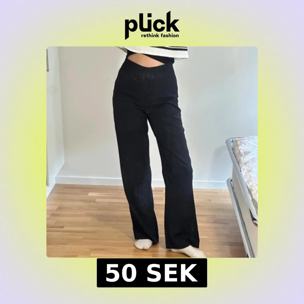 Säljer ett par svarta kostymbyxor från BikBok i storlek S. Dragkedja på sidan, sitter väldigt skönt på!