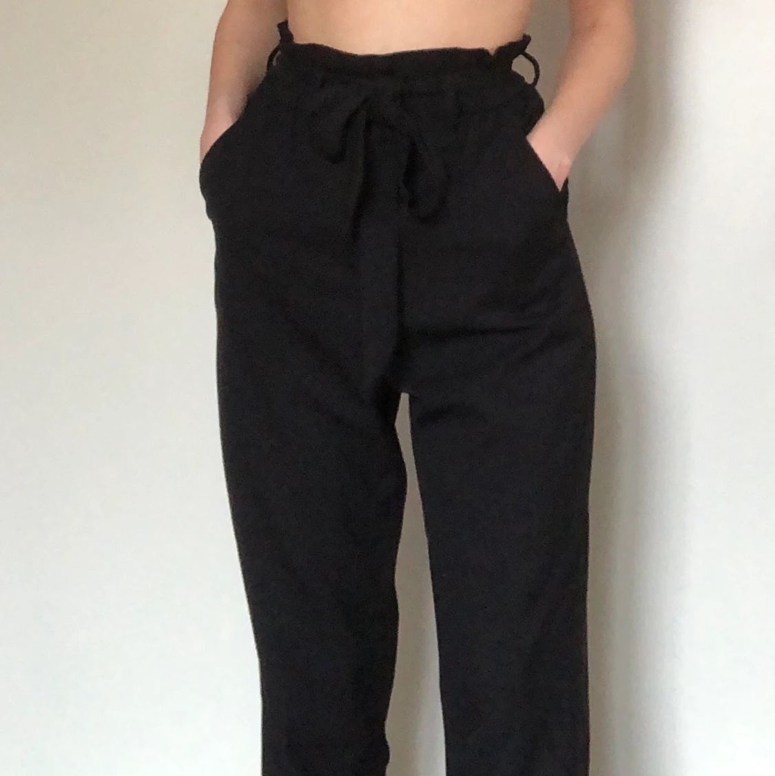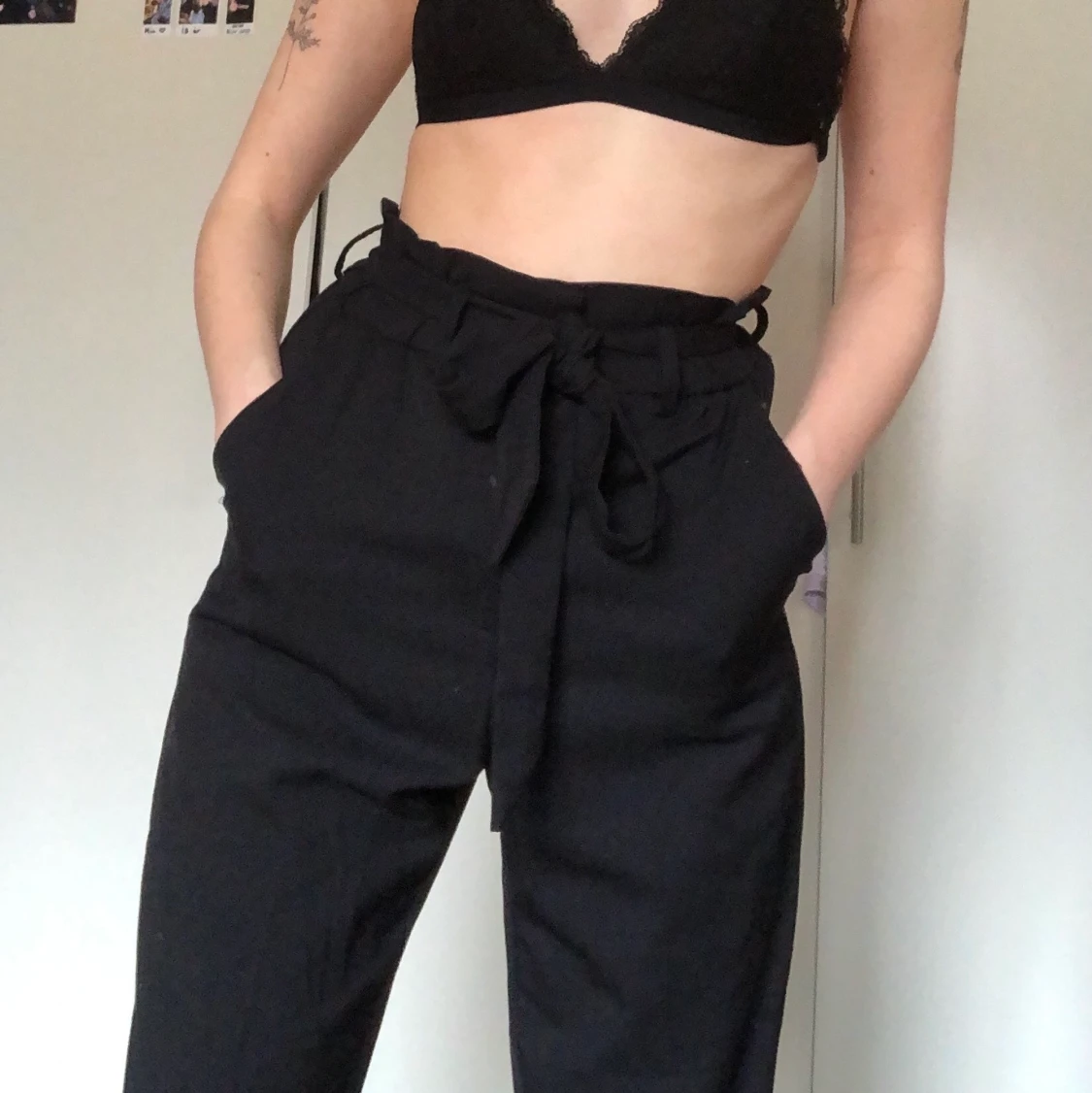 Så fina kostymbyxor med hög midja o ett band man kan knyta. Storlek 36 men passar mig som har 32-34. Använda typ 1-2 gånger så i princip nyskick!