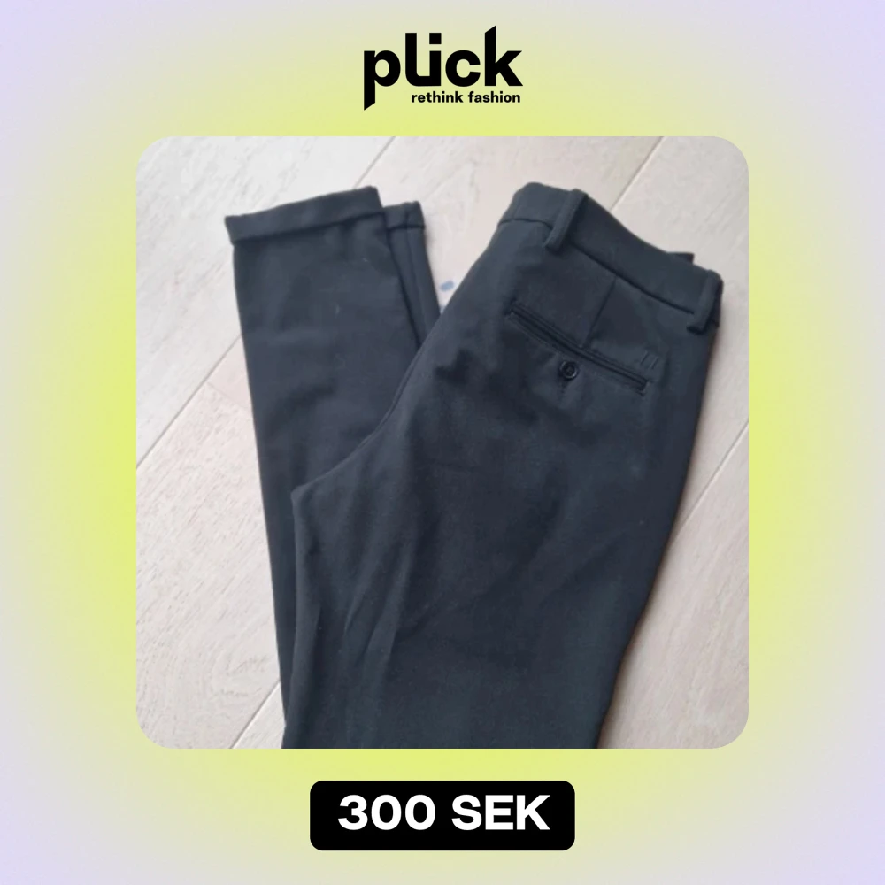 Svarta kostymbyxor (slim-fit) från Les Deux i mycket fint skick. Storlek 30. Byxorna är stretchiga och har en smal fotöppning med uppvikt kant. En myntficka och två snedställda fickor fram samt två passpoalfickor bak. Hällor i midjan och gylf med dra