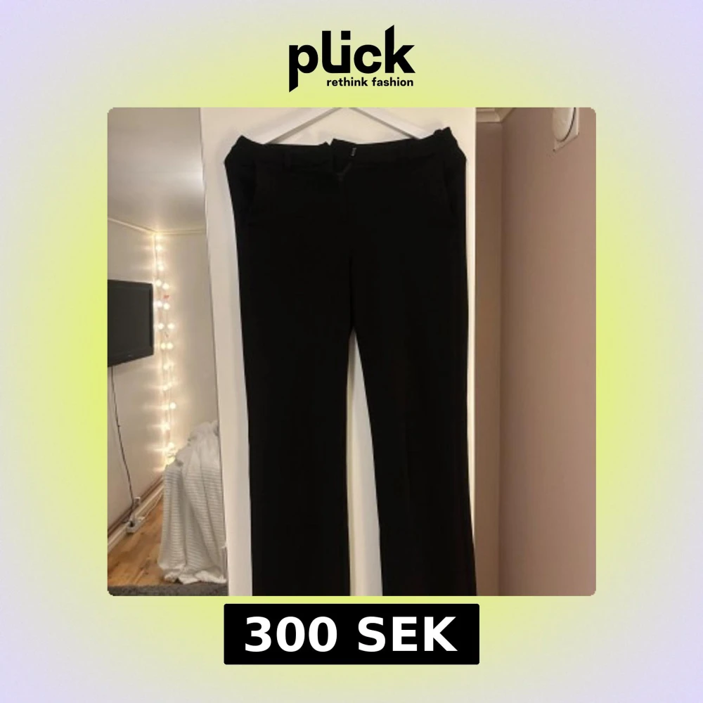 Snygga svarta kostymbyxor från Vero Moda med klassisk rak passform. Byxorna har hög midja, bälteshällor, dragkedja och både knapp och hake i linningen. Perfekta för en clean och stilren look.