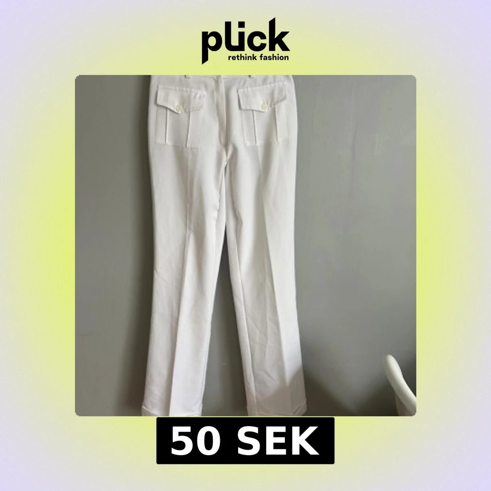 Snygga vita byxor från Wear It i rak modell med två fickor med lock och knapp framtill. Byxorna har en klassisk passform och är tillverkade i ett mjukt bomullsmaterial. Perfekta för dig som gillar stilrena och fräscha looks. De är något genomskinliga men inte mycket, har även sytt de mer lågmidjade