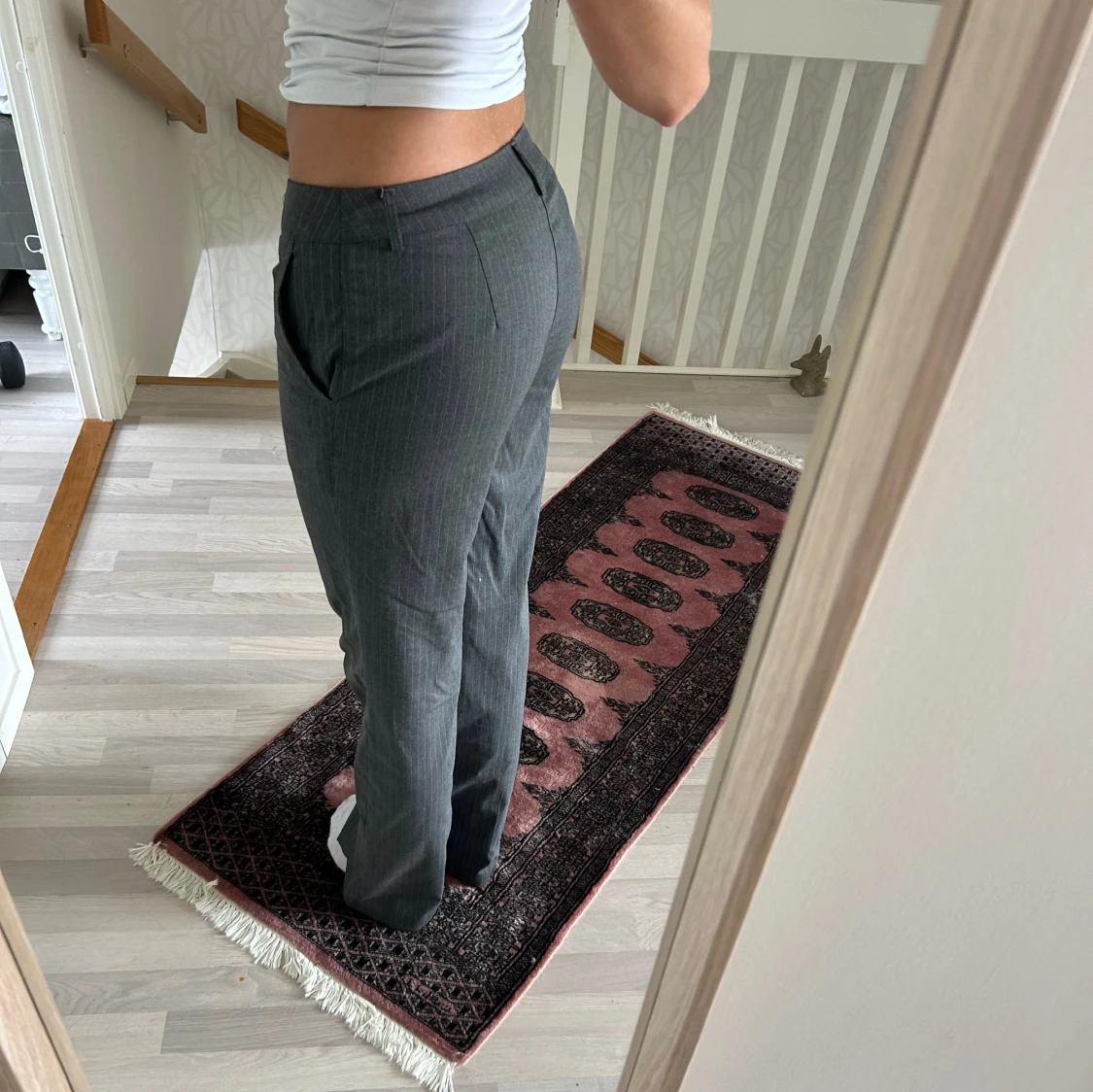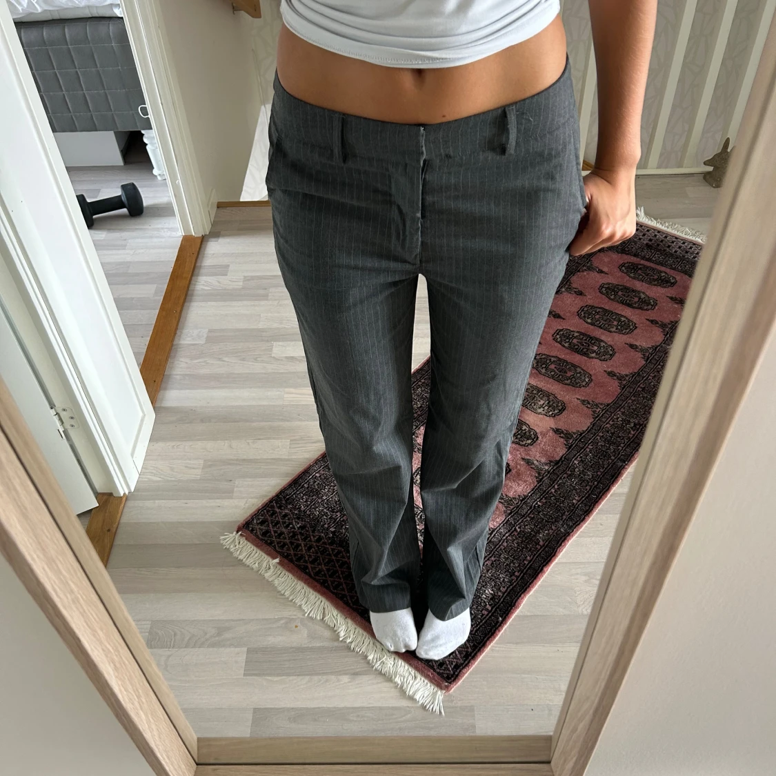 Jättesnygga kostymbyxor från Madlady!! Perfekta på mig som är 180 cm💓Midwaist men så snygga att vika ner eller ha mer baggy!! Nypris 649kr mitt pris 300kr