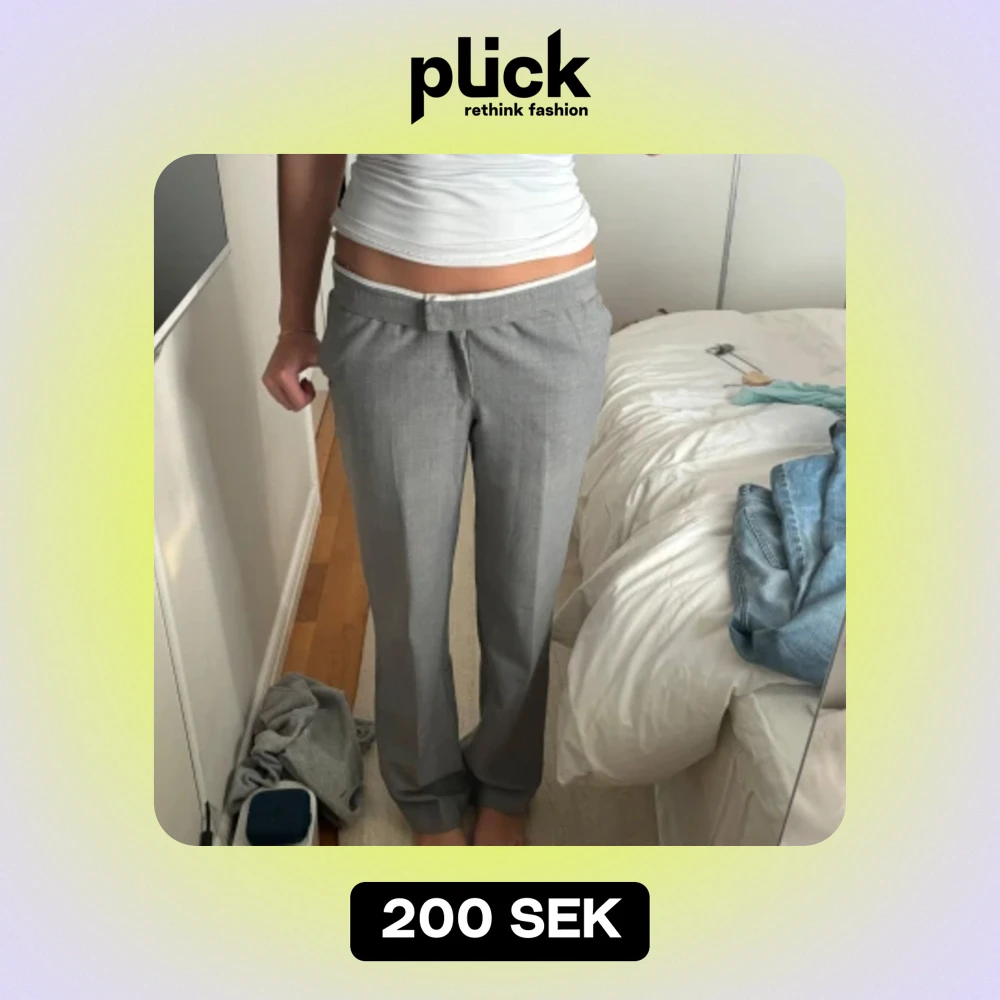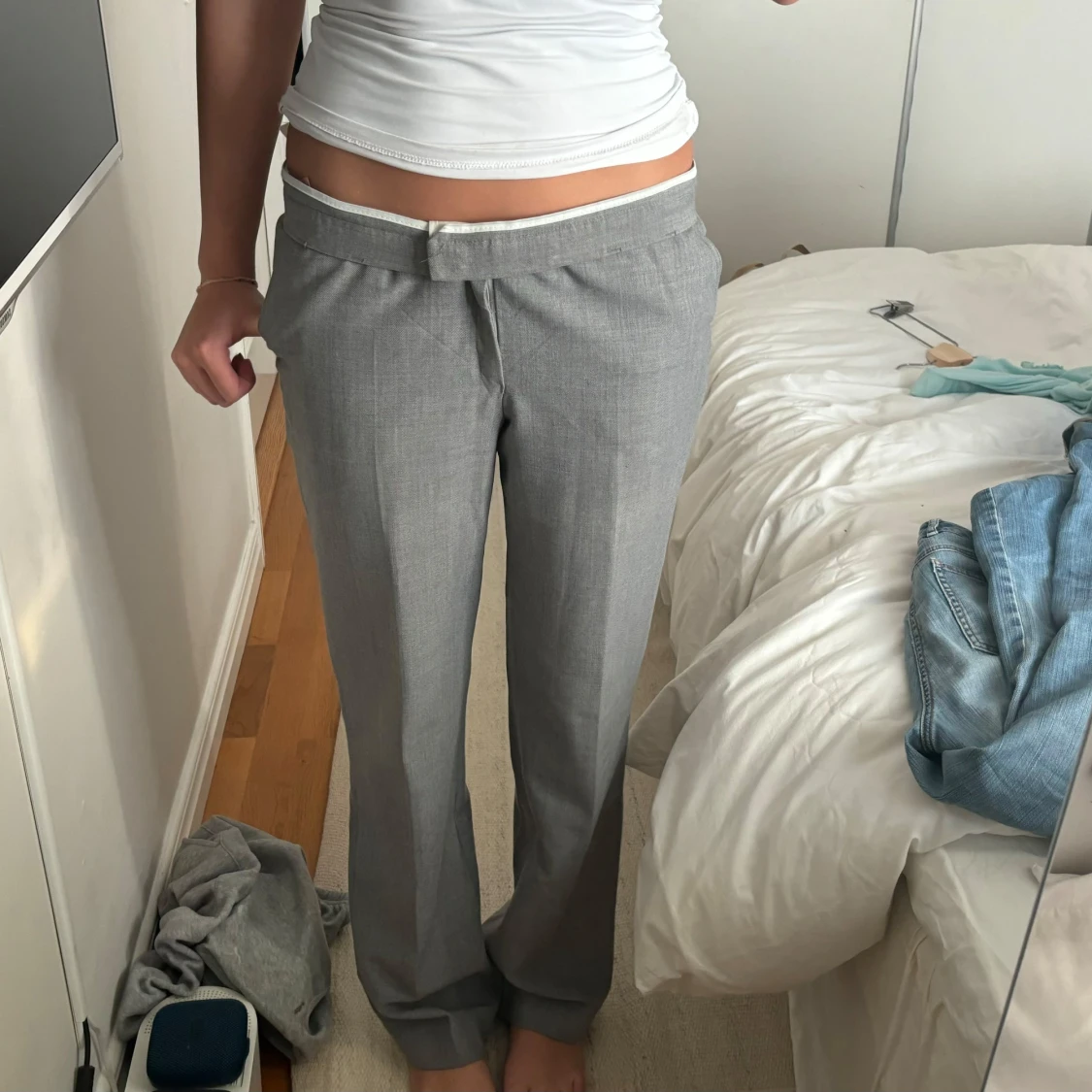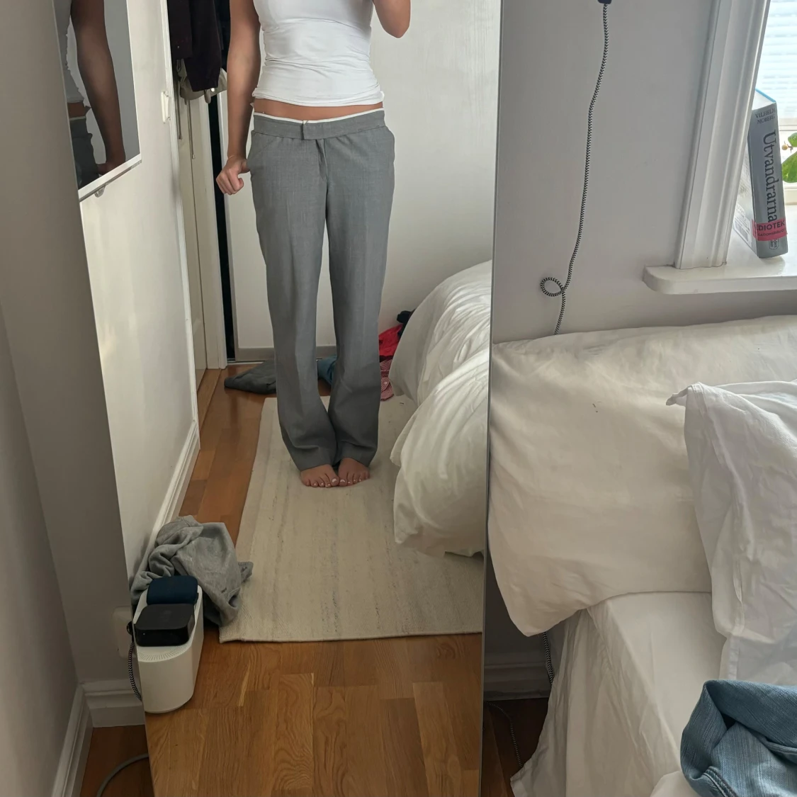 Gråa kostymbyxor, med hög midja men som jag brukar vika ner för en lägre midjehöjd! 🩶