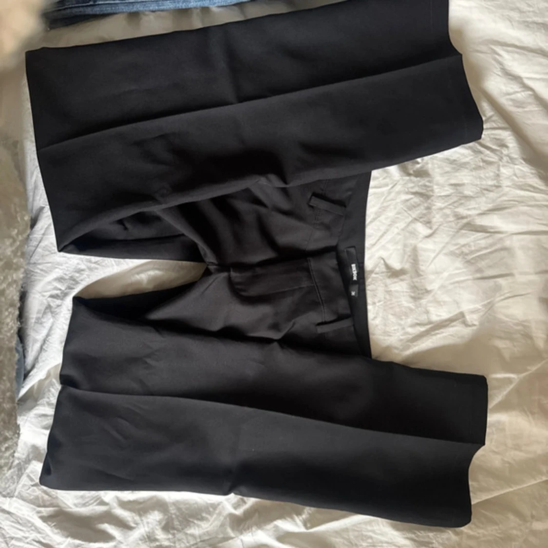 Svarta kostymbyxor från Bik Bok. Byxorna är lågmidjade och utsvängda. Snygg passform, pris går att diskutera!💕Aldrig använda, enbart testade.