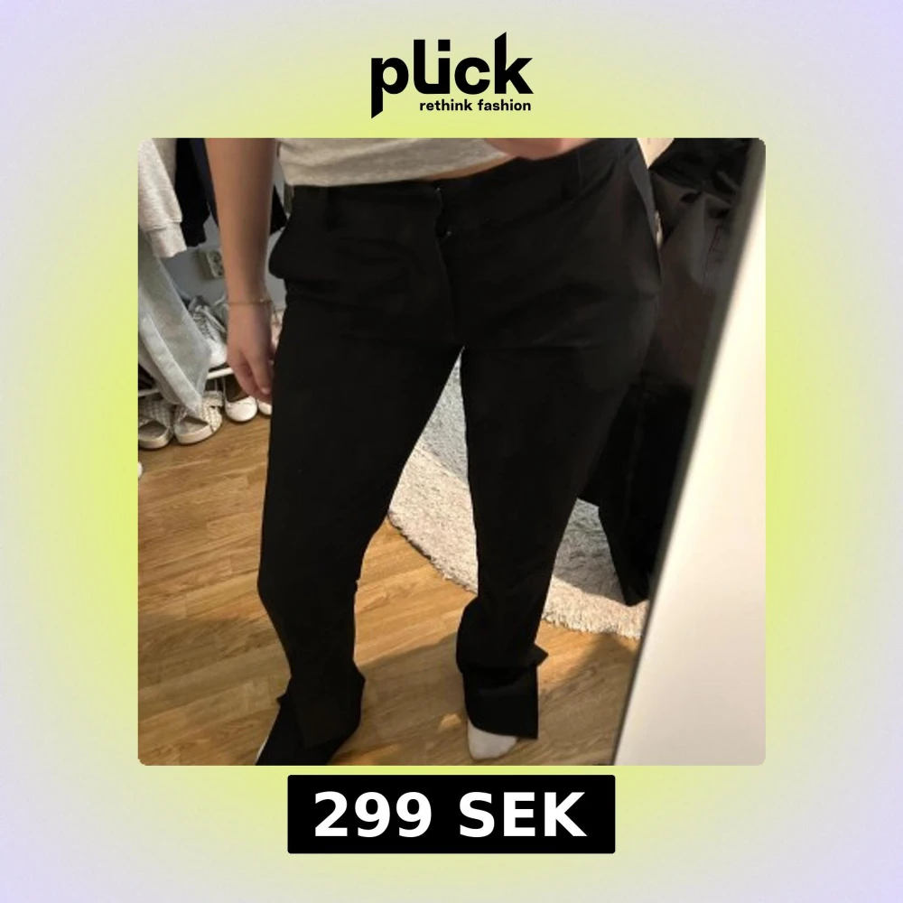 Snygga svarta kostymbyxor med låg midja och slits längst ner. Passar till allt 💗 Från BikBok storlek 34! Lite långa på mig som är 160