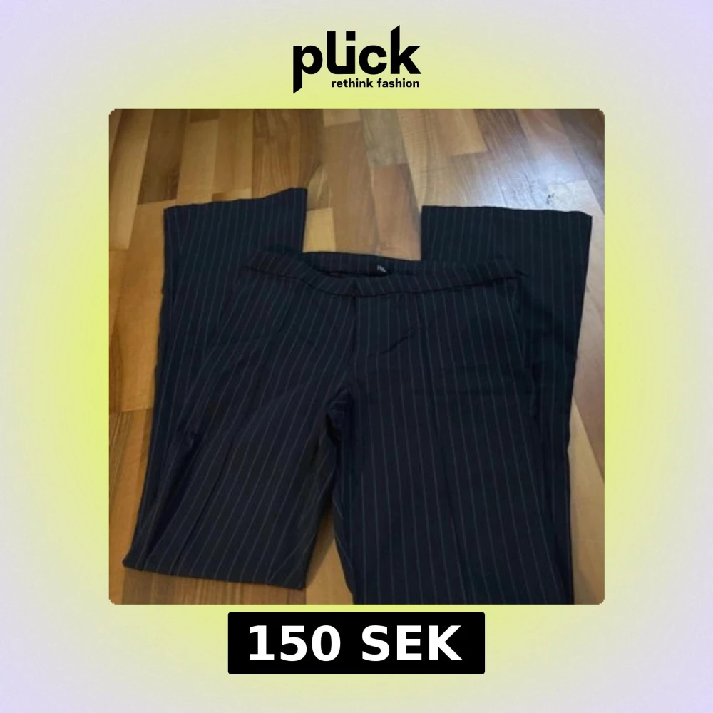 Snygga svarta kostymbyxor med tunna vita ränder i klassiskt randigt mönster. Bootcut. 36