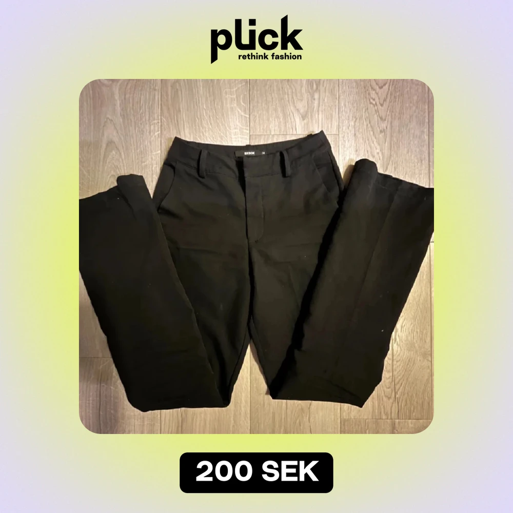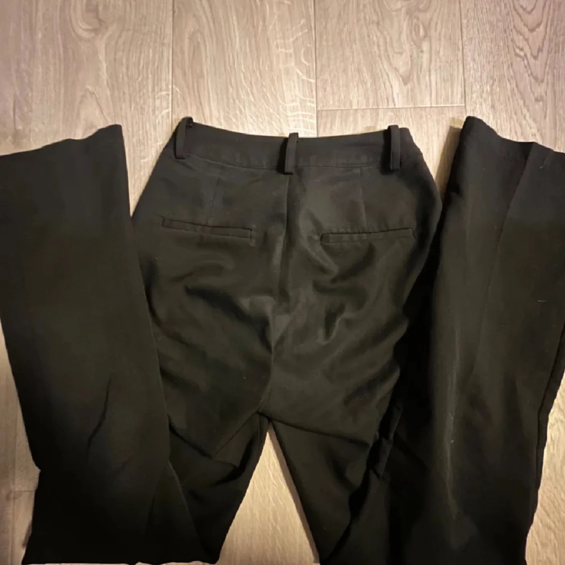 Säljer ett par kostymbyxor med diskreta fickor, då de har blivit för korta. Bra skick på byxorna inga typer av fläckar på de. Byxorna är i storlek 34. Nypris är 499 men säljer för endast 200 pris kan även diskuteras lite grann.