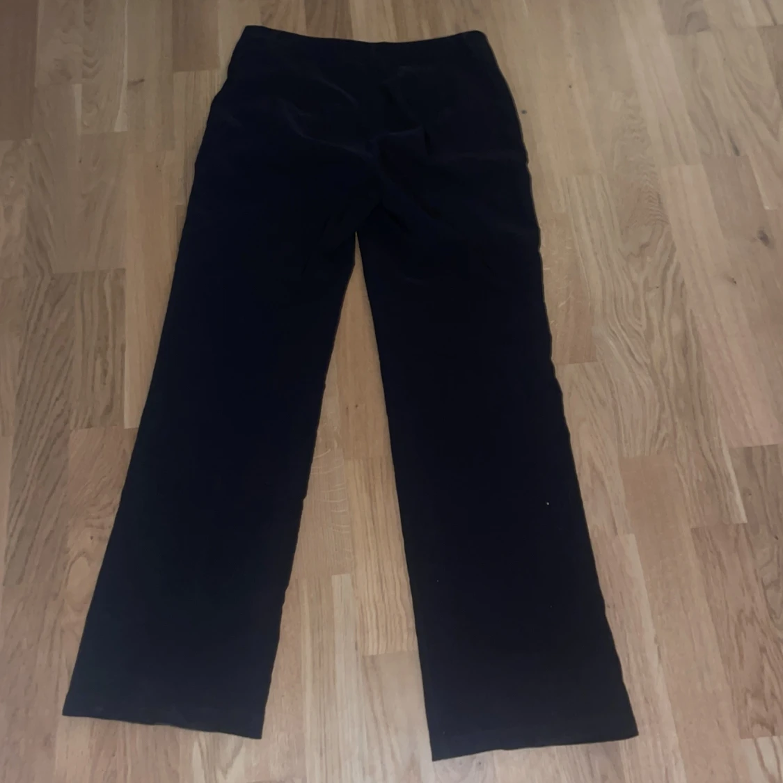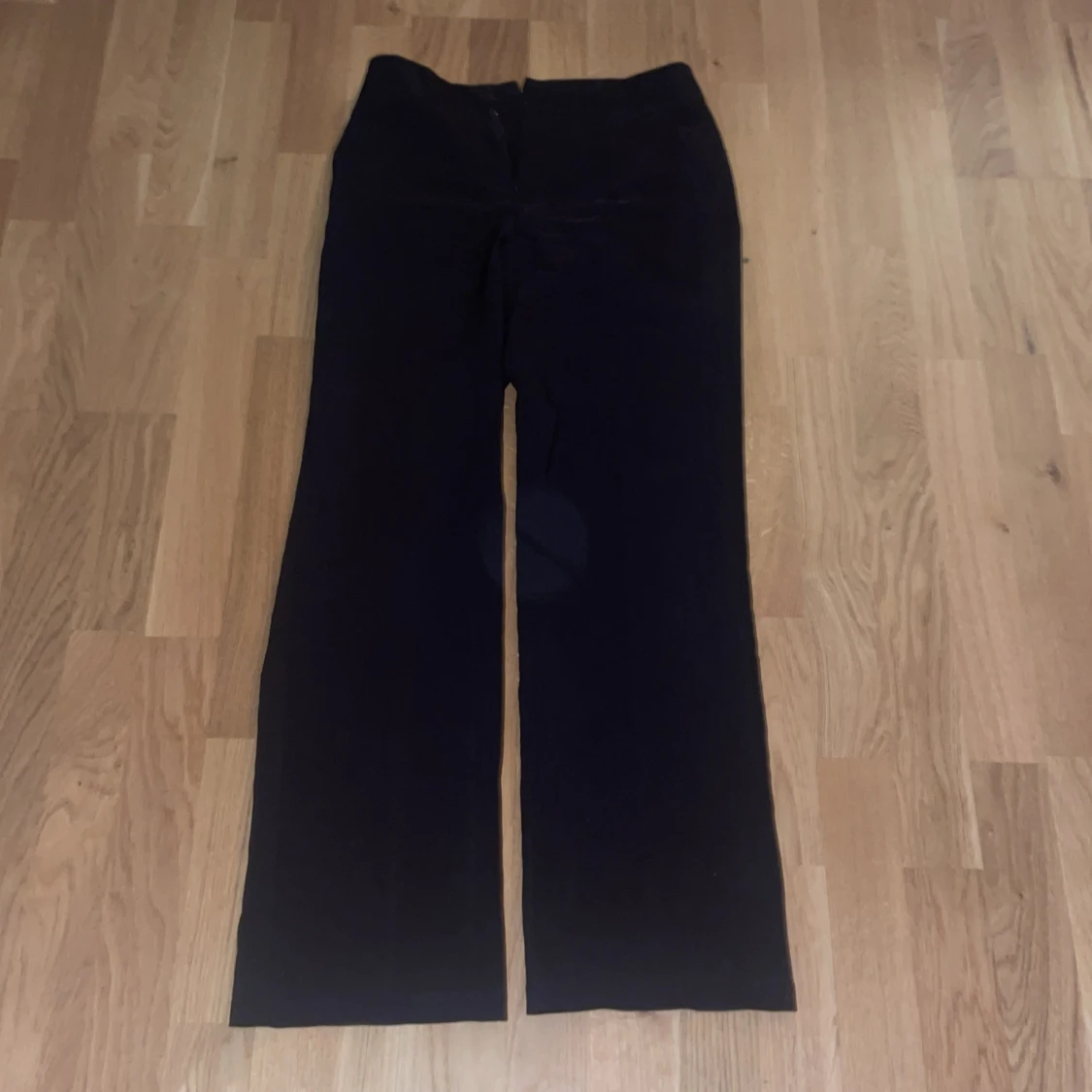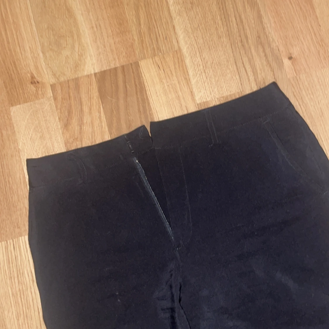 Säljer ett par svarta kostymbyxor i mycket bra skick. De har en dragkedja framtill och en klassisk rak passform. Perfekta för både vardag och festliga tillfällen. Passar bra till höst- och vintergarderoben. Strl 38 regular