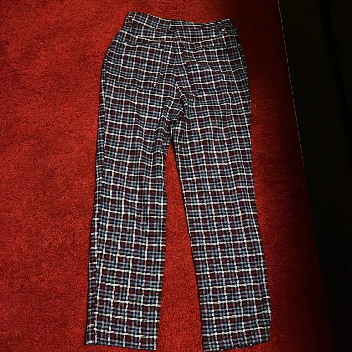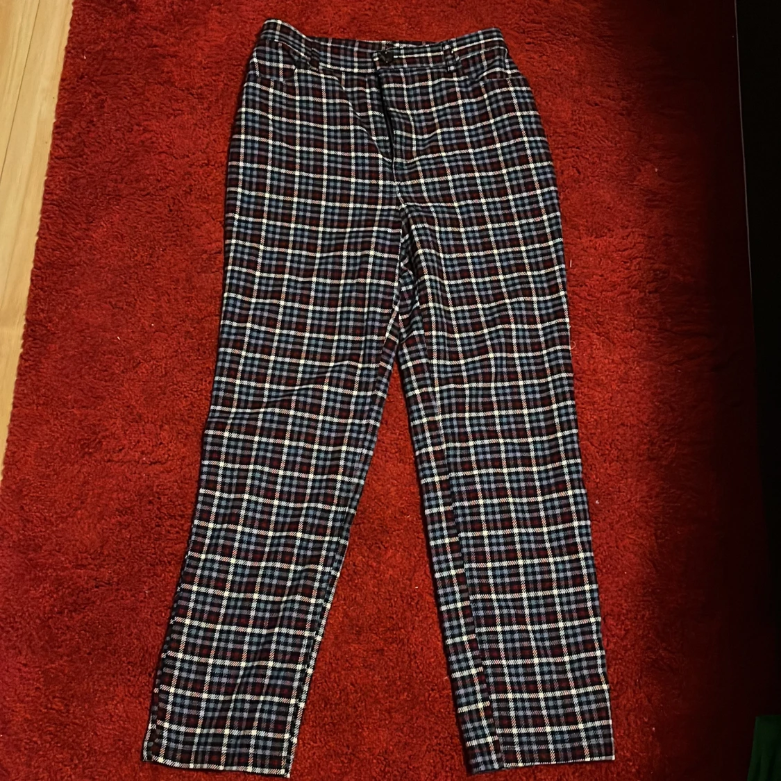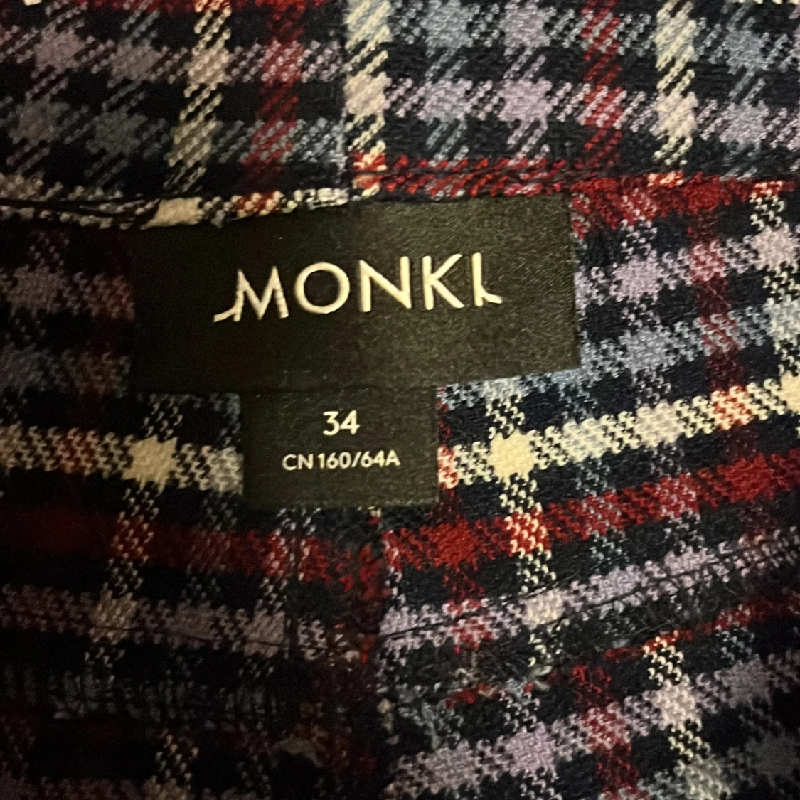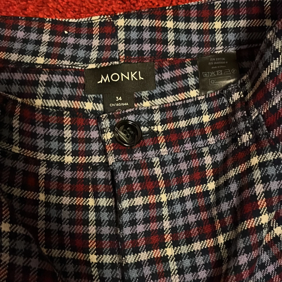 Snygga rutiga byxor från Monki i storlek 34 i en mix av rött, blått och vitt och lila ❤️💙🤍💜. Byxorna har en klassisk passform med knapp och dragkedja framtill. Perfekta nu till våren! 🥰💕🫶🏻