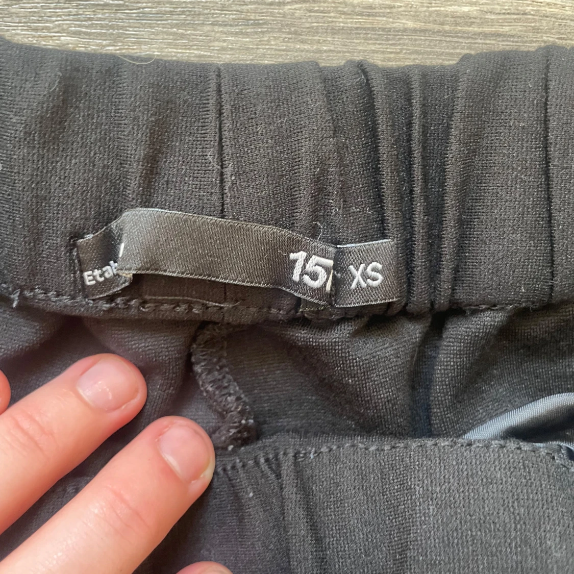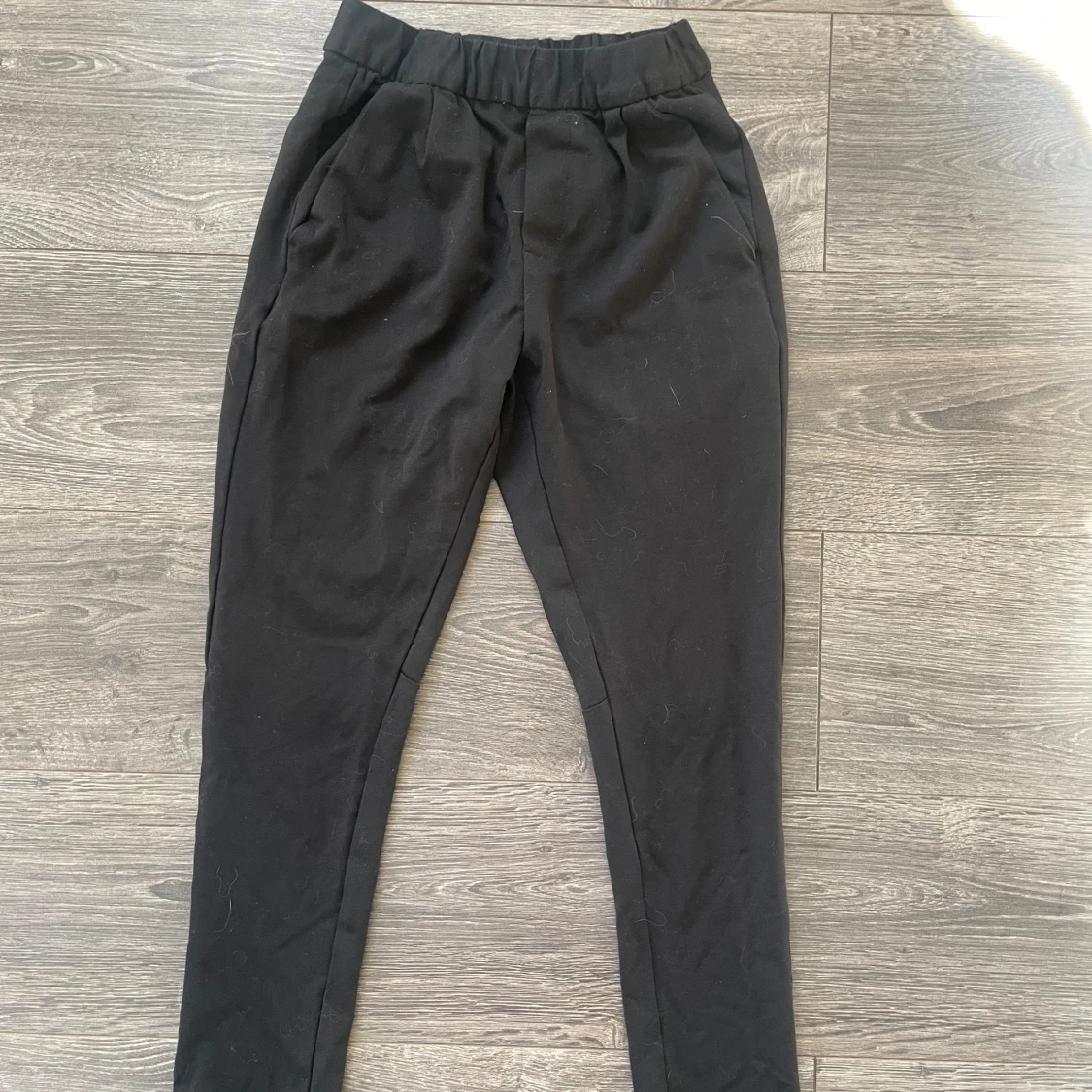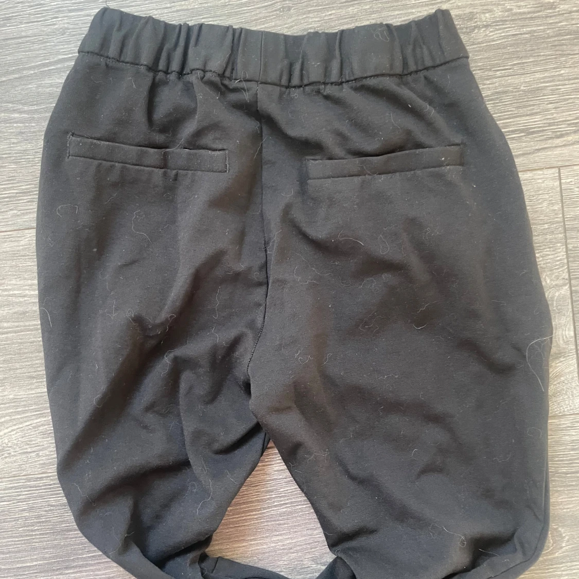 Svarta byxor med resĂ„r i midjan och raka ben. Byxorna har fickor fram och dekorativa fickor bak! đ