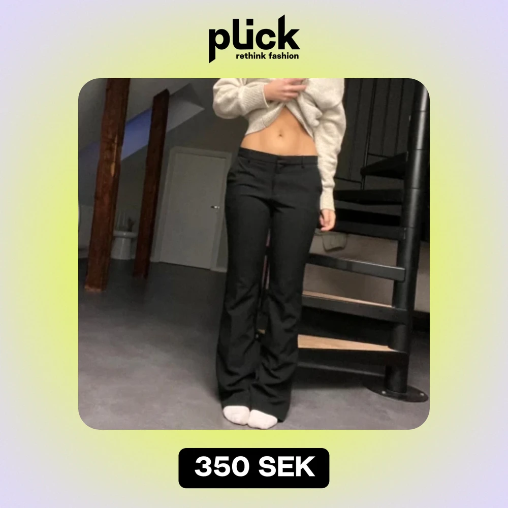 Jättefina lågmidjade kostymbyxor! Mkt fint skick, den enda defekten är att det lossnat en knapp på insidan, men inget som syns elelr påverkar byxan. Nypris 699 kr