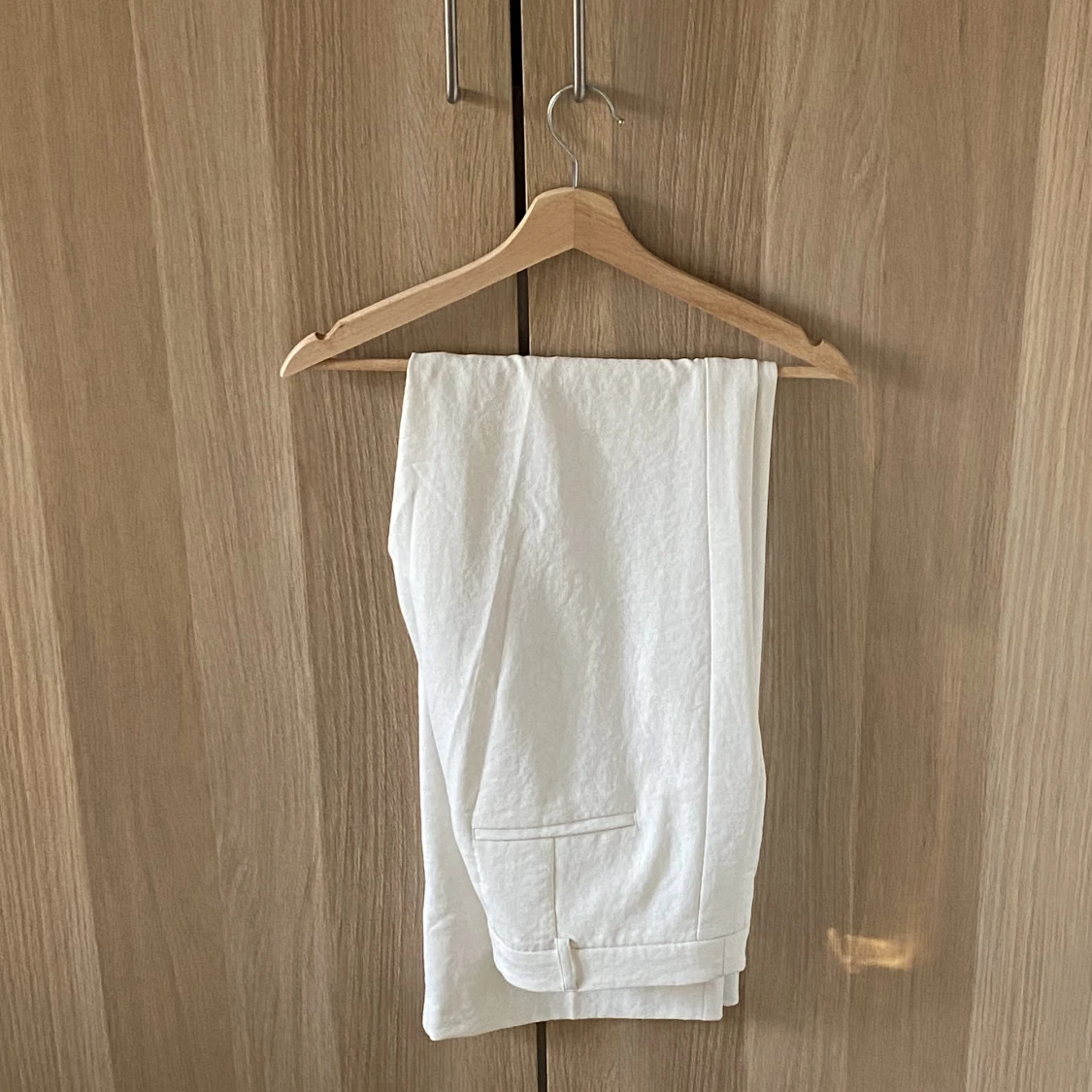 Vita långa kostymbyxor från stockhlm / MQ. Jag är 178 cm och de är perfekta i längden på mig. Sitter jättefint på.
