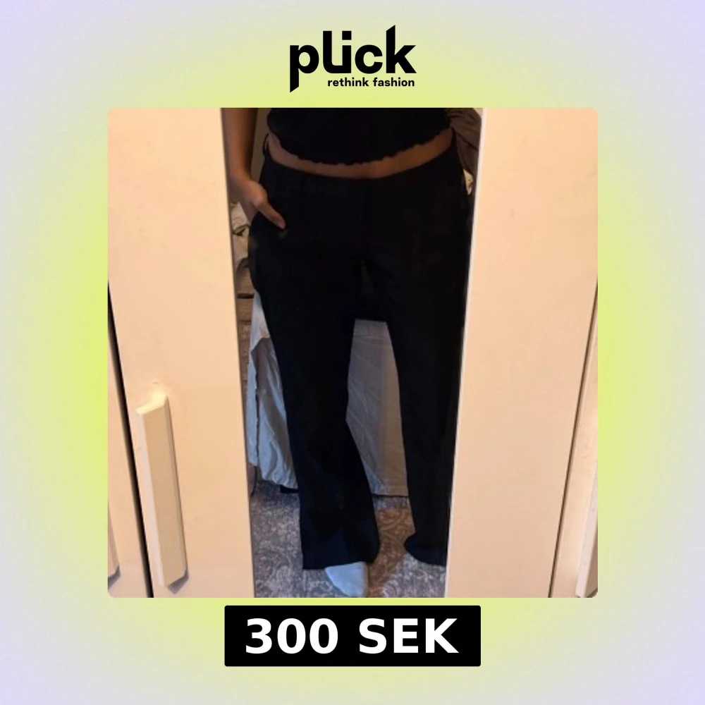 Säljer mina kostymbyxor från bikbok i storlek 42, jag har vanligtvis M i byxor och 42 passar.