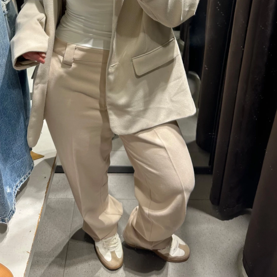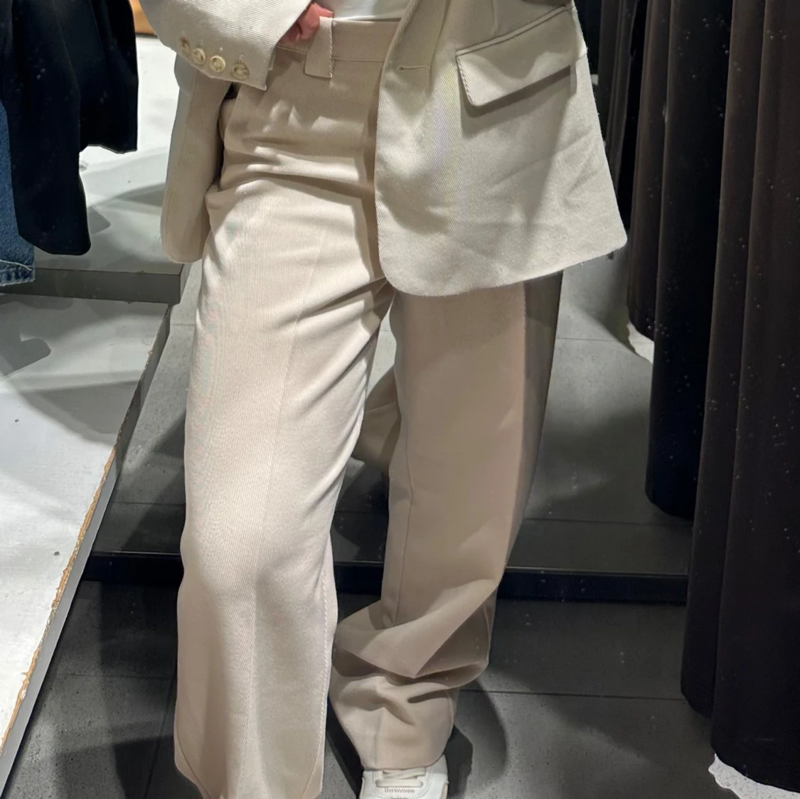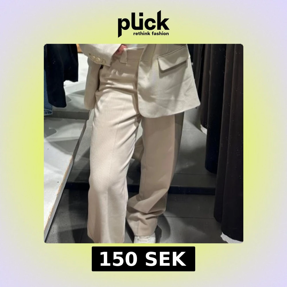Beigea kostymbyxor från NA-KD. Smutsiga längst ner på byxbenen pga för långa. Annars fint skick!