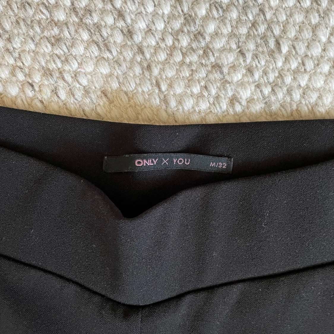 Svarta kostym byxor från Only, väldigt skönt material och bekväma, skulle säga att strl är S/M, ganska wide passform nedtill, inga fickor, midjan är töjbar och medelhög💕🌟✨