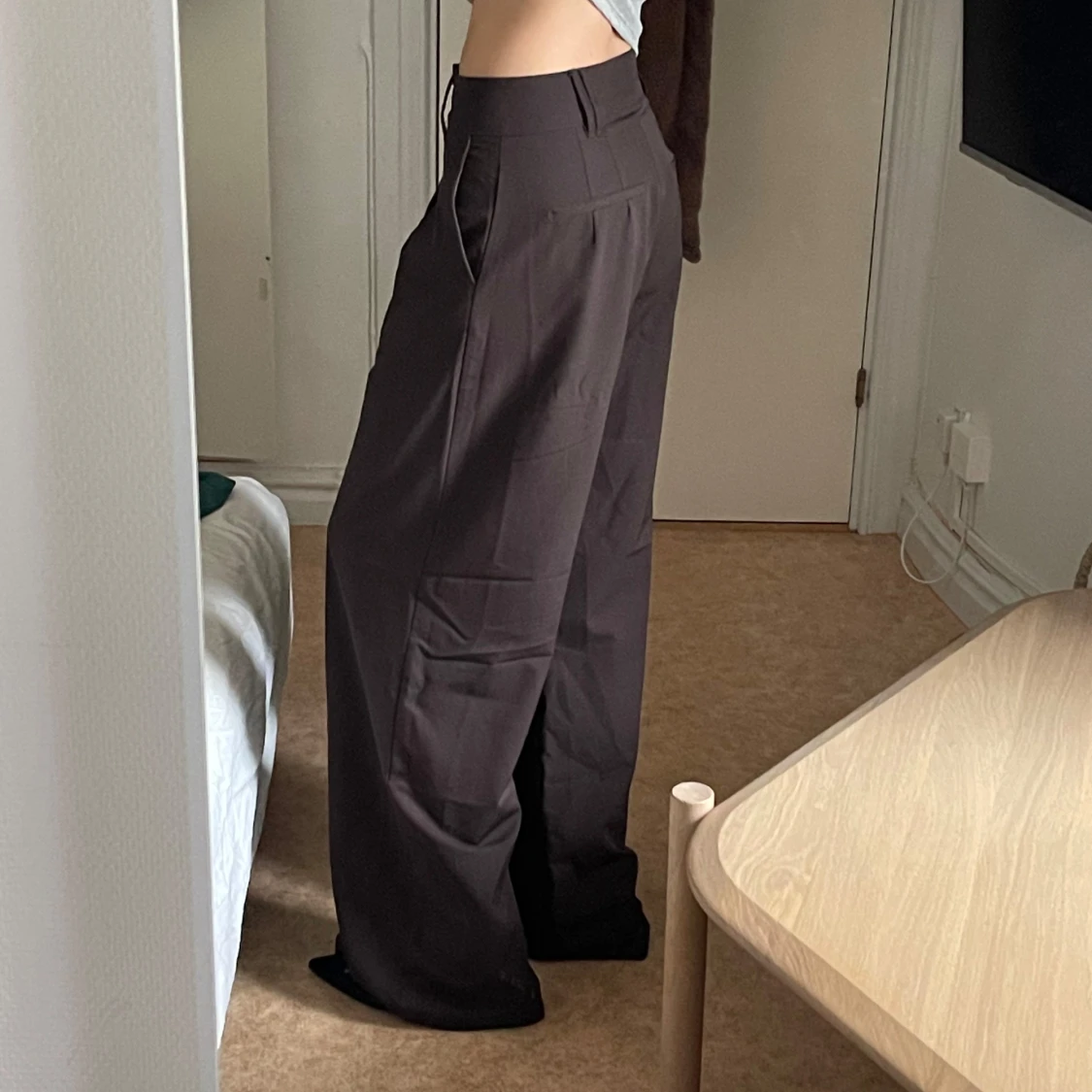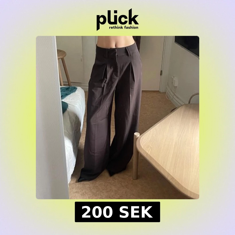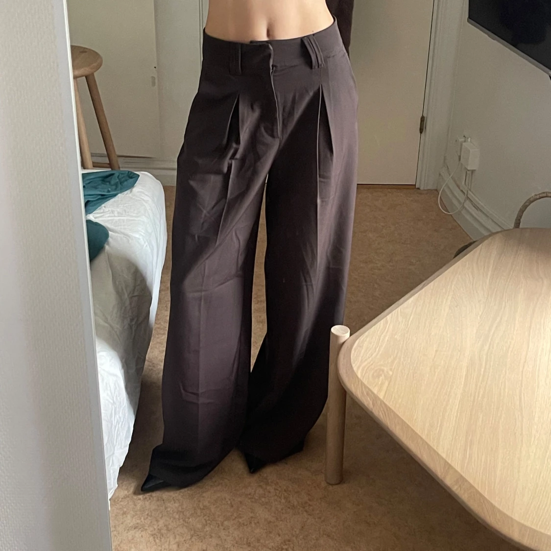 Pösiga mörkbruna kostymbyxor från Bershka i storlek S. Knappt använda så väldigt fint skick. Riktigt bekväma! Jag på bilden är 175cm