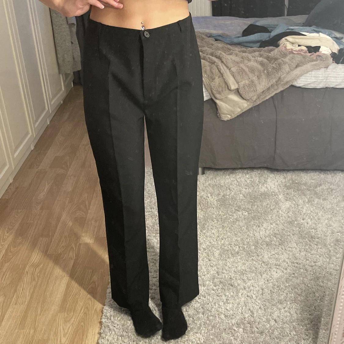 Ett par jätte fina kostymbyxor köpta begangnat, högmidjade funkar även att ha som lågmidjade , säljer för det inte riktigt är min stil
