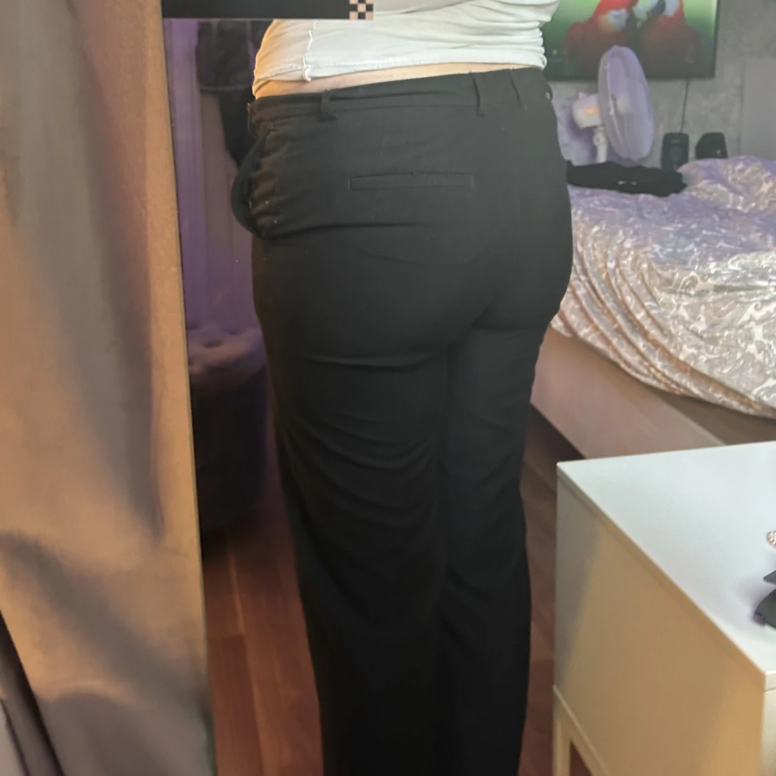 Säljer ett par kostymbyxor som inte passar i midjan längre. Perfekt längd på mig som är 175 Köpta på Nelly men står att det är ifrån JJXX. Använda men mycket gott skick! Mid Waist. Nypris 499:-