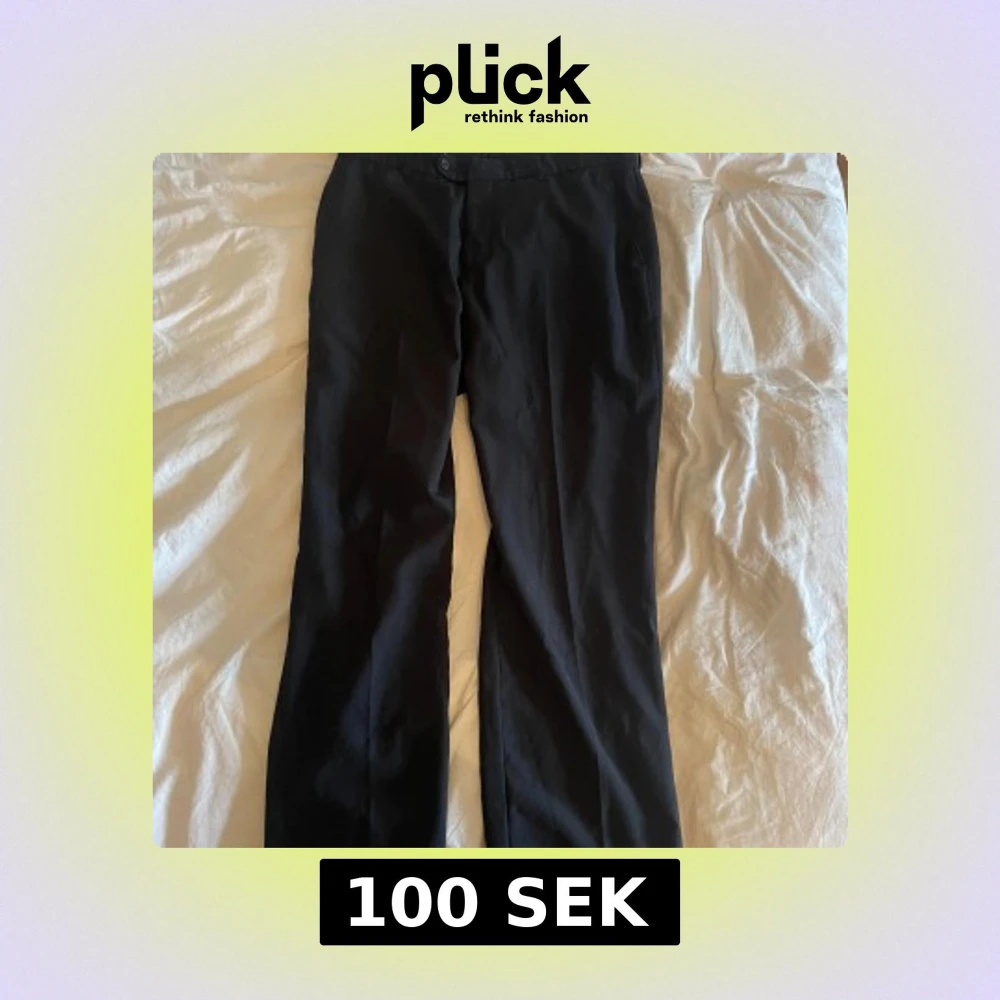 Riktigt snygga kostymbyxor, säljer dem eftersom jag har flera par av kostymbyxor. Tyvärr är storleken svår att säga eftersom det står ingen men jag är 183 och tycker de sitter riktigt bra men skriv för bilder på!