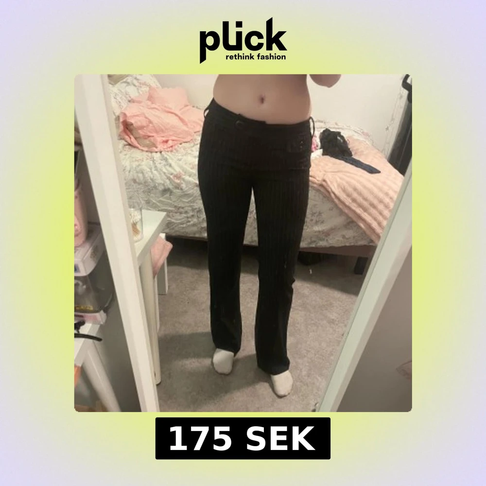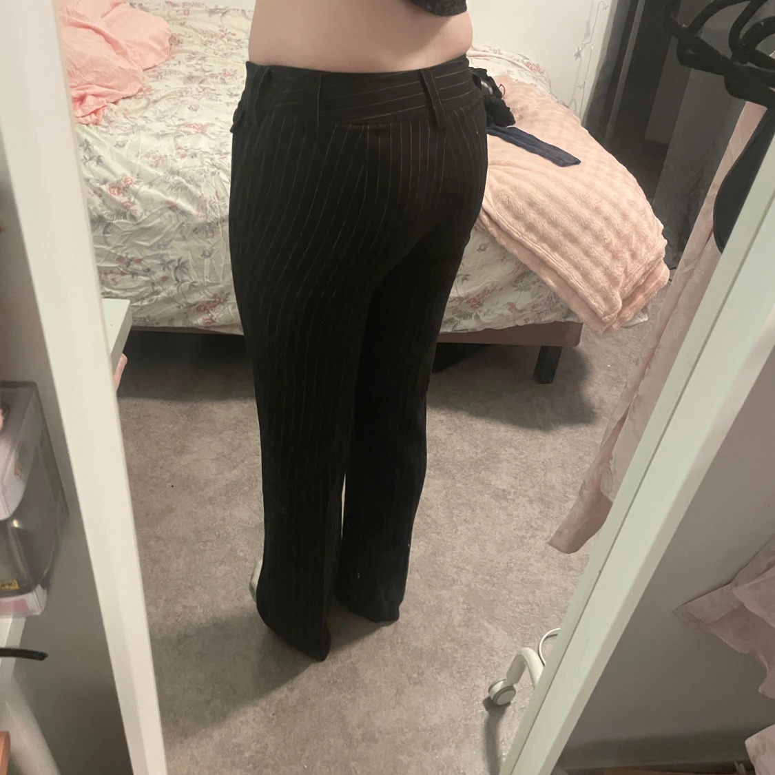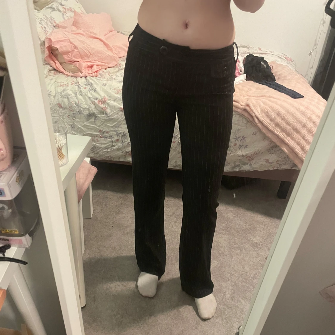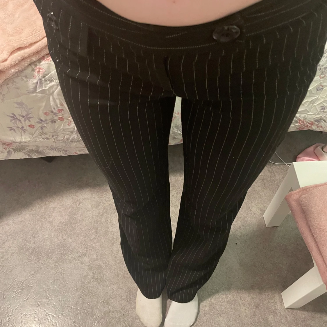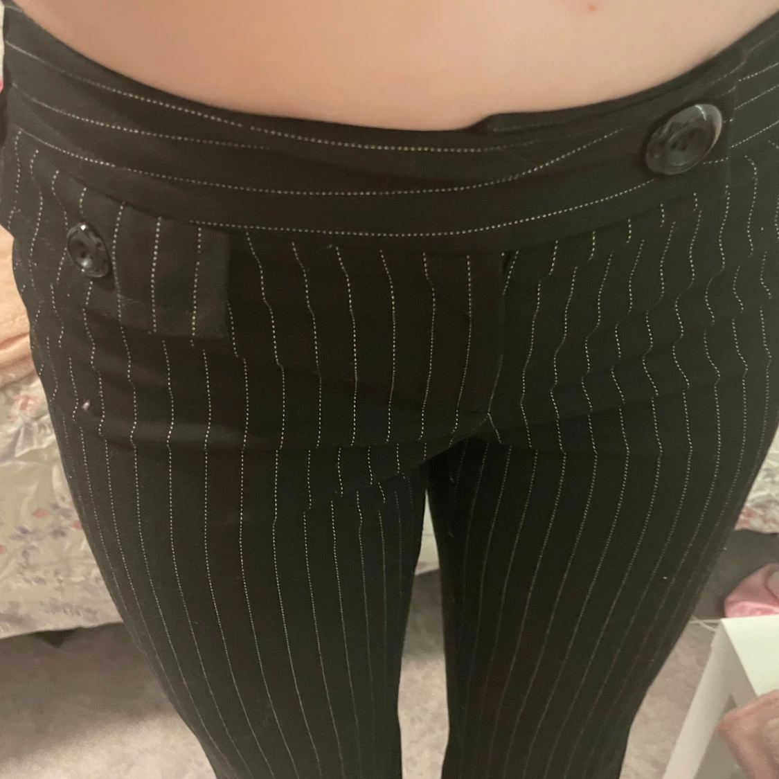 Snygga svarta kostymbyxor med diskreta ränder och låg midja. Lite små för mig