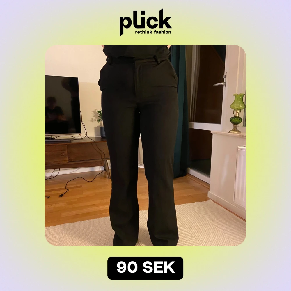 Säljer mina kostymbyxor i storlek 36 då de har blivit för små. Gillade de väldigt mycket, de är väldigt bekväma. Kostymbyxorna är i bra skick och inga tydliga tecken på användning förutom att sömmen längst ner på ena byxbenet har gått upp en bit, men det är på insidan så syns inte. (Syns på sista bilden) För referens är jag 167cm.