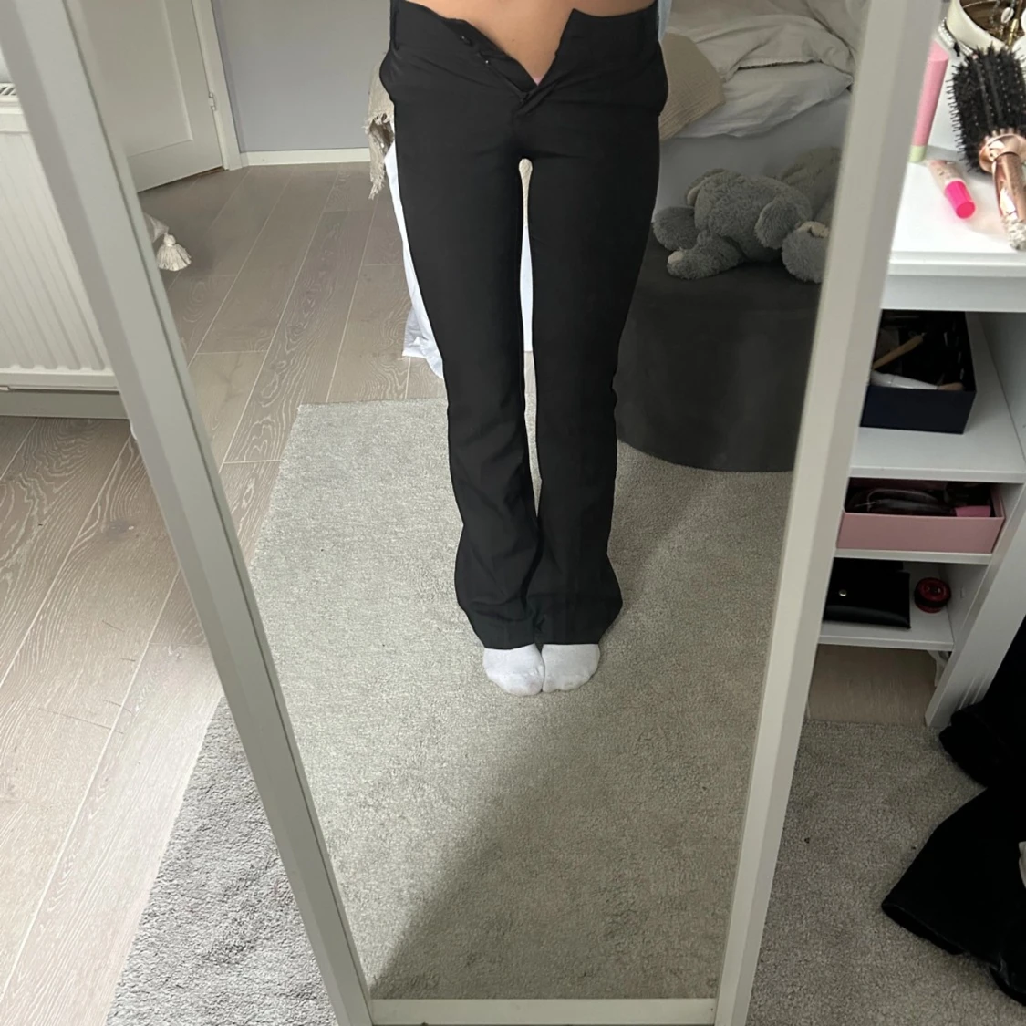 Svarta lowwaisted kostymbyxor frĂ„n Design by Si đ€ storlek Xs och liten bit insydda i lĂ„ren, andvĂ€nda fĂ„tal gĂ„nger