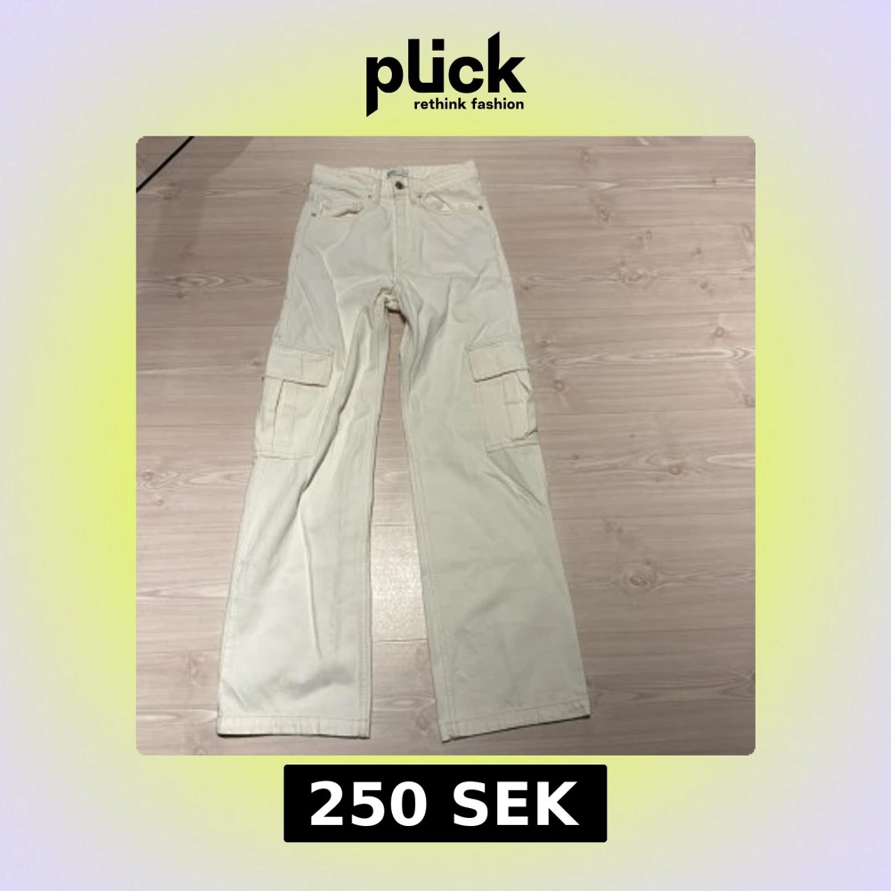 Stilrena krämvita cargojeans från gina med raka ben och stora sidofickor. Fint skick, använda fåtal gånger.