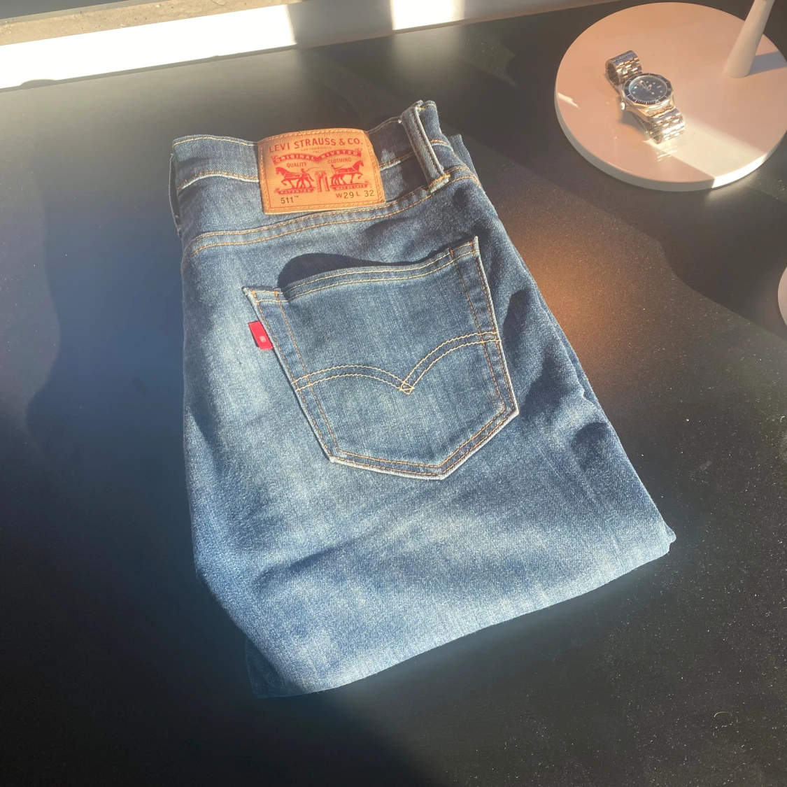 Tjena! Säljer ett par klassiska Levi's 511 jeans i blå tvätt. Modellen är slim fit med normal midja och raka ben. Skicka 8/10, pris 199kr. Hör av er vid frågor eller funderingar!