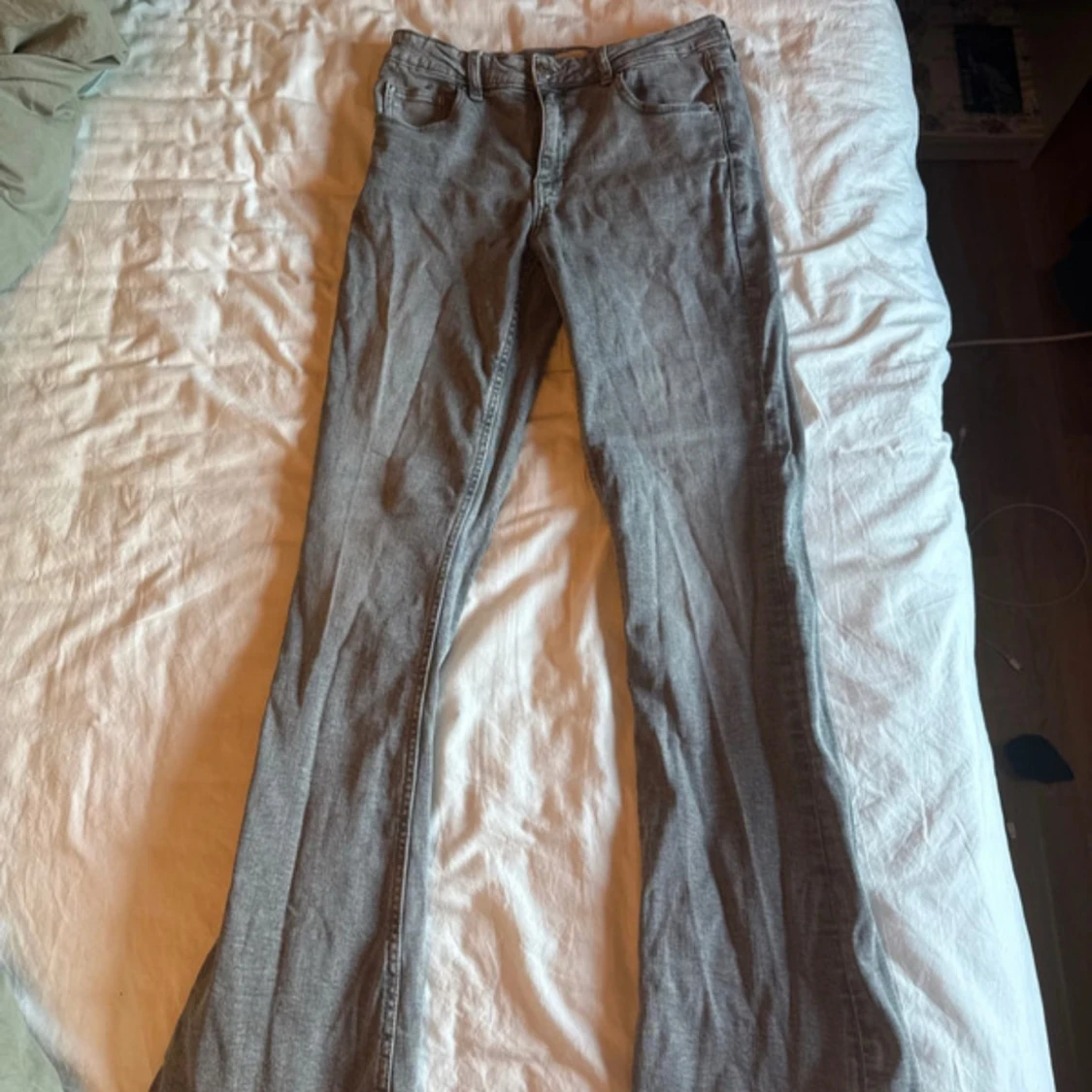 Säljer ett par grå jeans från Gina Tricot Young i storlek 164. Köpte jeansen för ungefär 1 år sen men är i väldigt fint skick och passar mig perfekt som är 165, säljer dom då jag inte har någon användning av de längre.