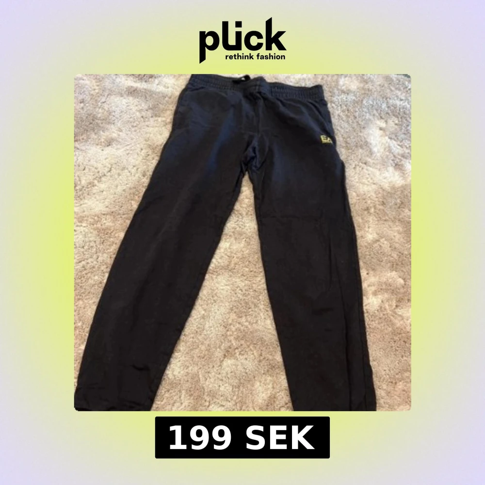 Svarta mjukisbyxor från EA7 Emporio Armani med gul logga på vänster lår. Byxorna har resår i midjan med snörning och är tillverkade i mjukt bomullsmaterial. Perfekta för en chill och sportig look.
