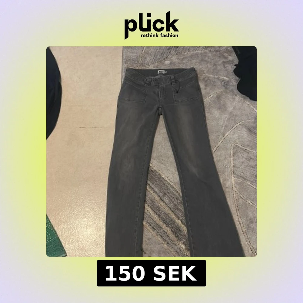 Snygga grå jeans från 157 med bootcut passform och raka ben. Byxorna har stora framfickor, klassiska bakfickor och dubbla knappar i midjan. Perfekta för dig som gillar en avslappnad men trendig stil.
