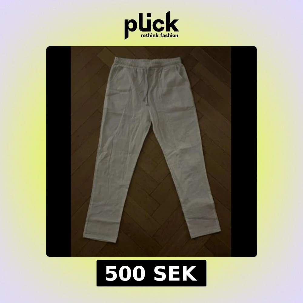 Två par byxor i klassisk rak modell, två par vita och ett par marinblå. Båda har elastisk midja med dragsko och är tillverkade i svalt linne. Perfekta för chill dagar eller när du vill ha en clean och enkel look.