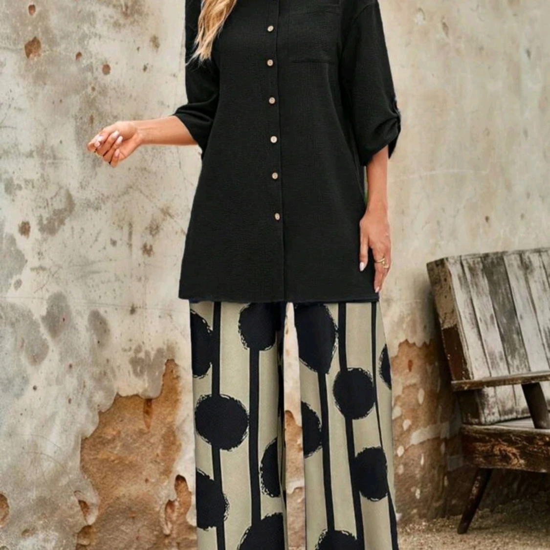 Säljer ett par beige vida byxor med stora svarta prickar och ränder. Byxorna har en loose passform och är riktigt flowy, perfekta för dig som gillar statement-plagg. Materialet känns lätt och luftigt, vilket gör dem sköna att bära hela dagen.