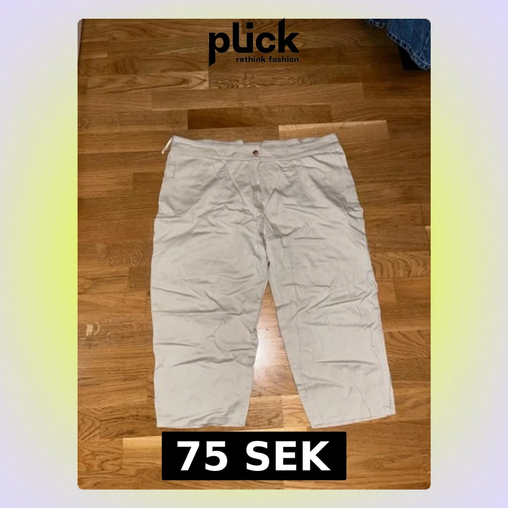 Snygga beiga croppade byxor från Feeling Woman. Byxorna har normal passform, raka ben och klassisk knappstängning framtill. Tillverkade i mjukt bomullsmaterial som känns skönt mot huden. Perfekta för en avslappnad och stilren look.