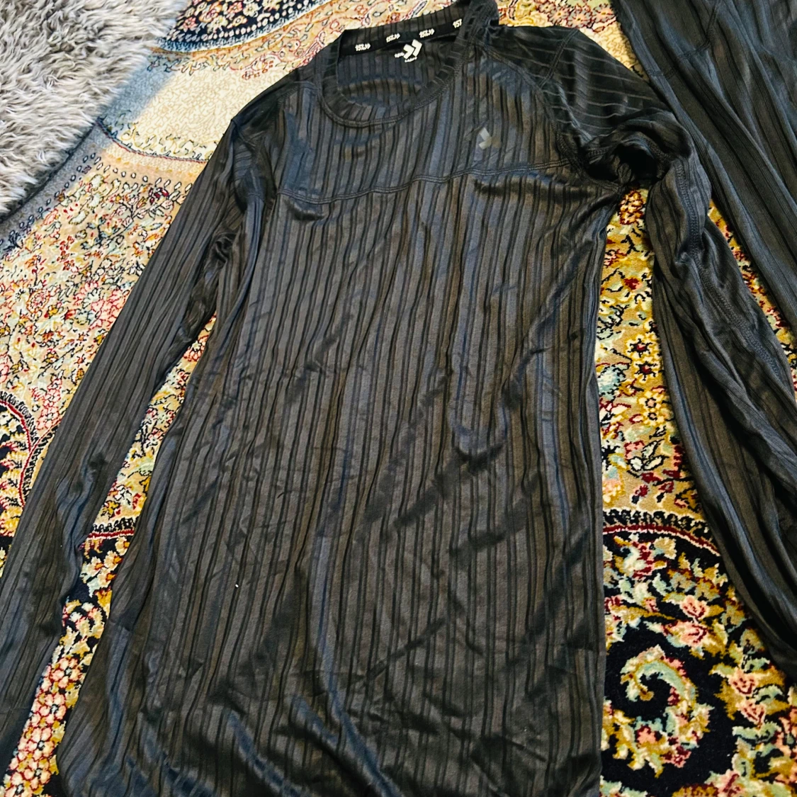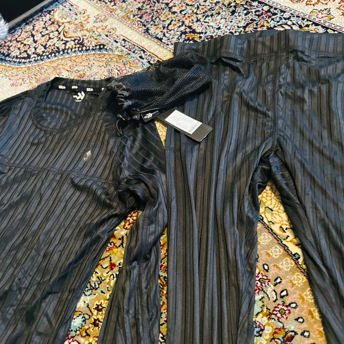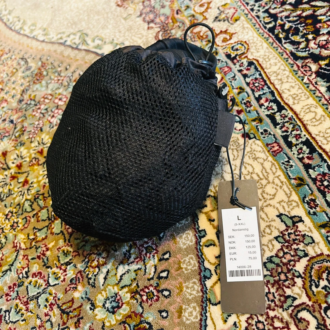 Svarta underställset från Nordanstig, Lagar 157 i storlek L, med diskret randigt mönster. Tillverkade i ett lätt och stretchigt syntetmaterial som andas, perfekta för lager-på-lager under kalla dagar. Säljs tillsammans med matchande långärmad tröja och praktisk förvaringspåse.
