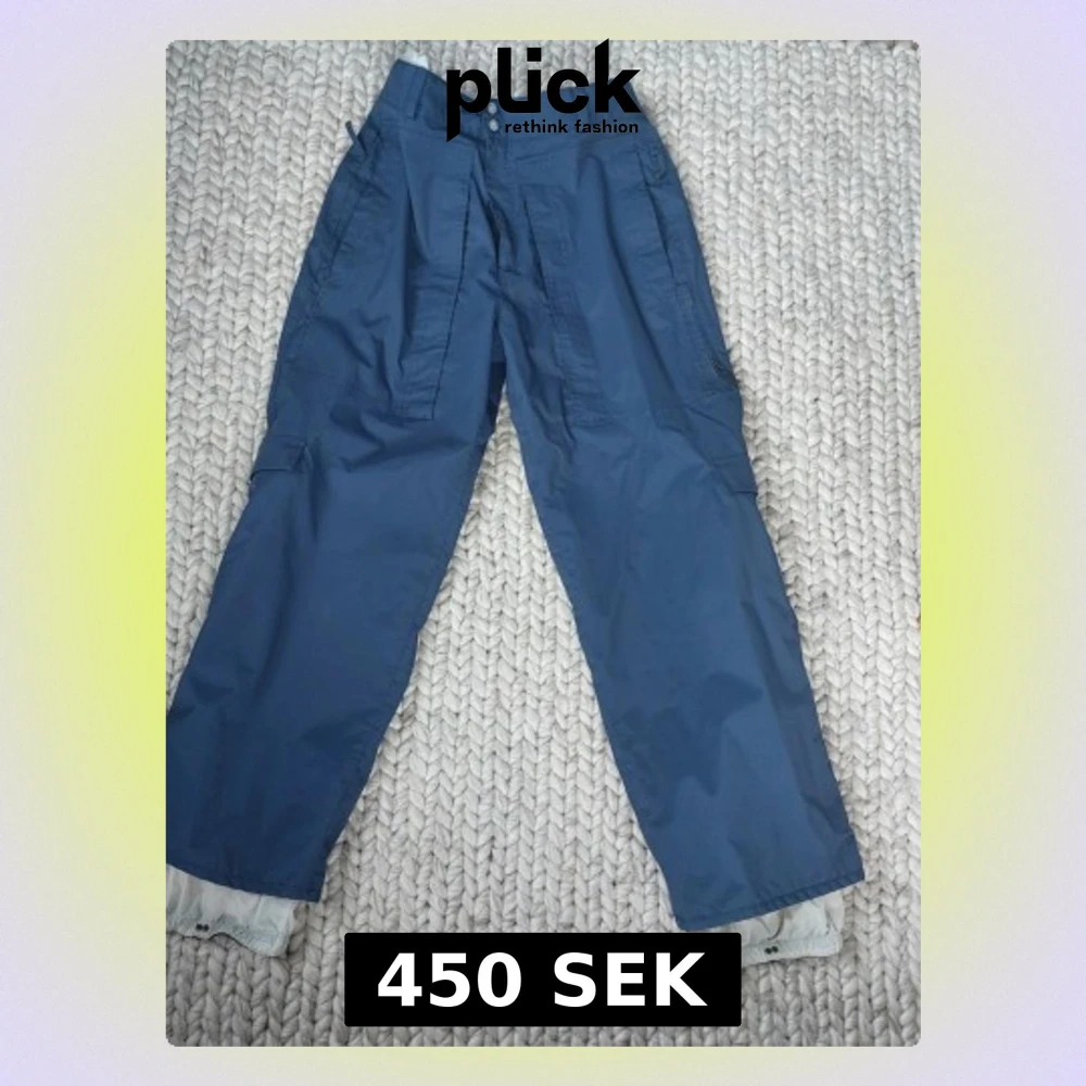 Säljer ett par blå täckbyxor från Burton Ronin i storlek L. Byxorna har flera fickor, elastiska benslut. Det finns en lagning på byxan vid fickan fram se bild.