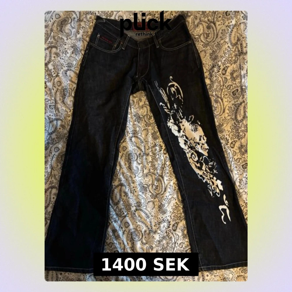 Väldigt snygga wax jeans som är väldigt. Knappt täcken på användning förutom en söm som har börjat gått upp men som är oviktig, bara för synens skull, enkelt att fixa. Kolla bilderna! Pris kan diskuteras! 100% bomull, ingen stretch. UNISEX, low/midwaisted. Midjemått: 42cm, Innrebensläng: 80cm