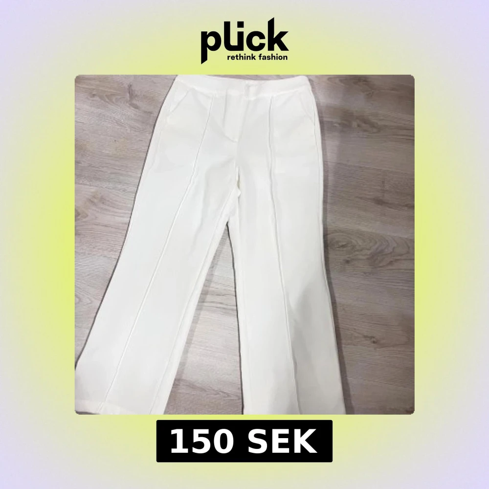 Snygga vita kostymbyxor med raka ben och markerade pressveck framtill. Byxorna har hög midja och diskreta fickor i sidorna.