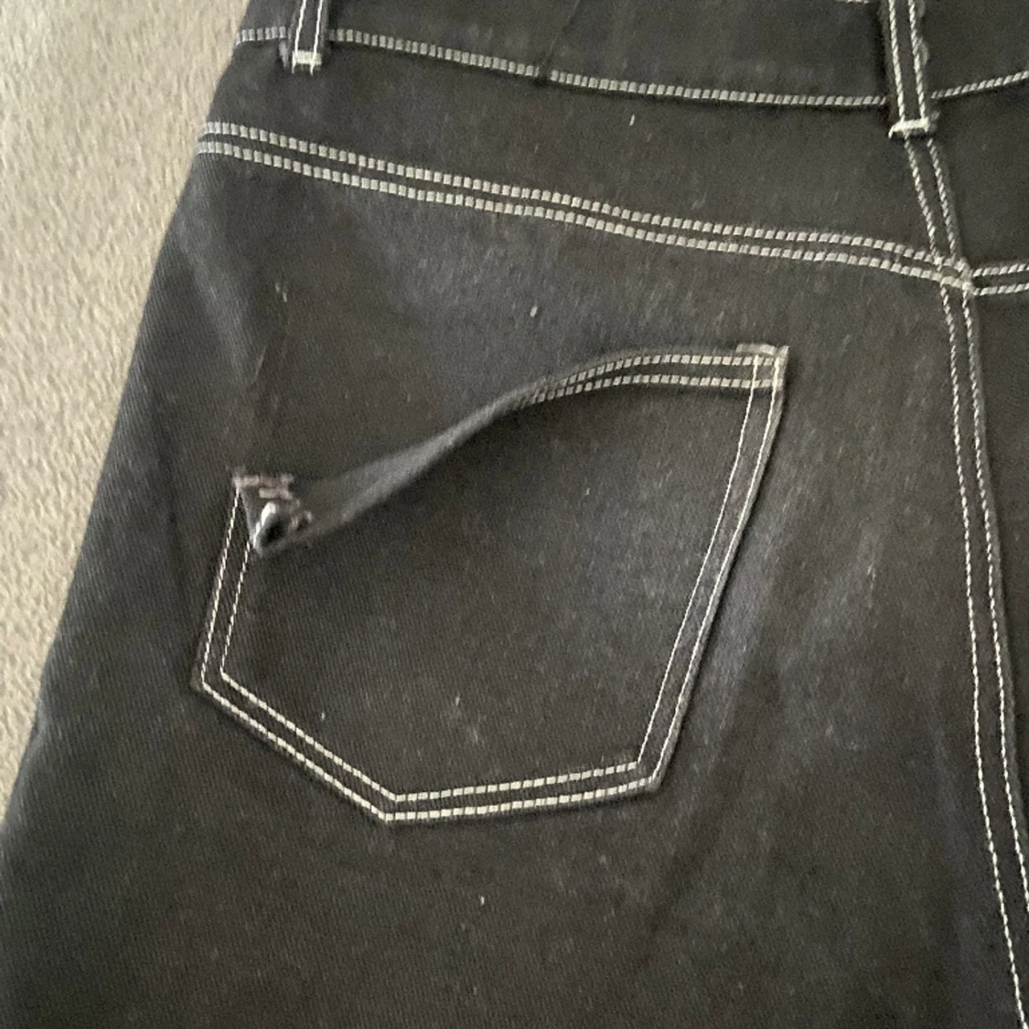Tyvärr lite sönder vid bakfickan. Knappt så man märker det. Storlek L.