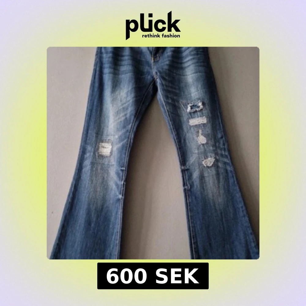 superfina lågmidjade bootcut jeans!! så trendiga, köpt på plick men tyvärr lite för korta för mig.. midja: 40cm, innerbenslängd: 80cm🥰 står L på lappen men uppfattar dem mer som S/M!