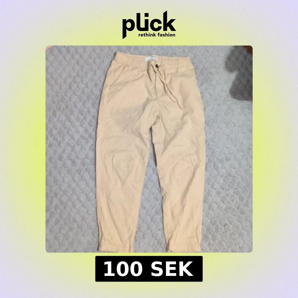 Säljer ett par beiga linnebyxor. Storlek L men som en M i benlängden.